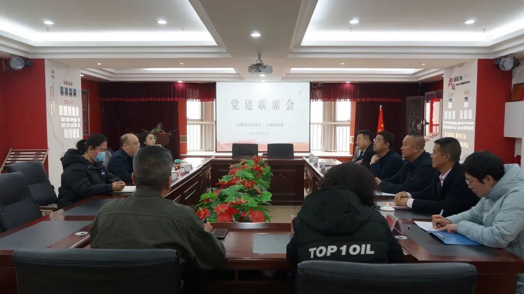 2023年3月22日,万青路街道党工委副书记乌曦,春光社区党委书记、居委会主任武玮,党委副书记张雅乐到我会考察交流并召开党建联席会,内蒙古河北商会党委书记宋国栋,常务会长高文发,内蒙古中北冀源建筑有限责任公司党支部书记赵会朝,内蒙古河北商会党支部组织委员周兰星,轮值会长谷红梅,轮值秘书长韩雪梅参加了会议。