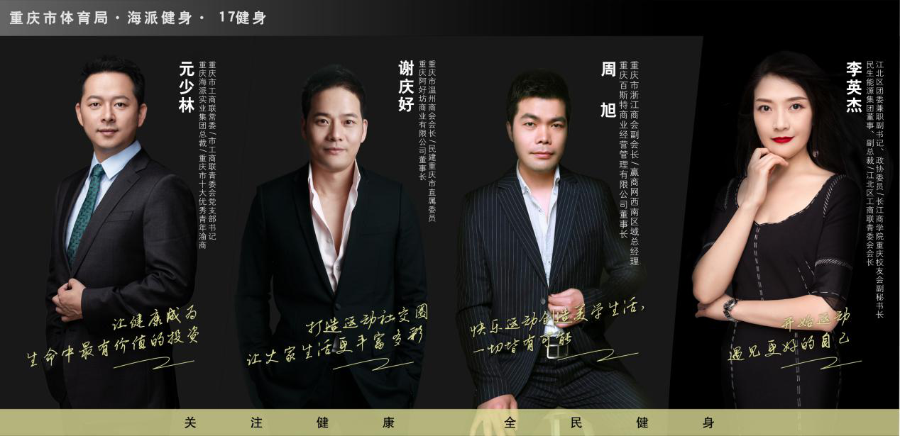 2020年8月8日是第12个“全民健身日”,结合当前疫情防控形势,以“全民健身日”为契机,在重庆市体育局、重庆市社会体育指导中心的指导与支持下,西南健身连锁领军品牌——海派健身携17健身,联合16位重庆本土知名民营企业家共同行动,进行“关注健康 全民健身——民营企业家助力健康中国”线上主题展示活动。