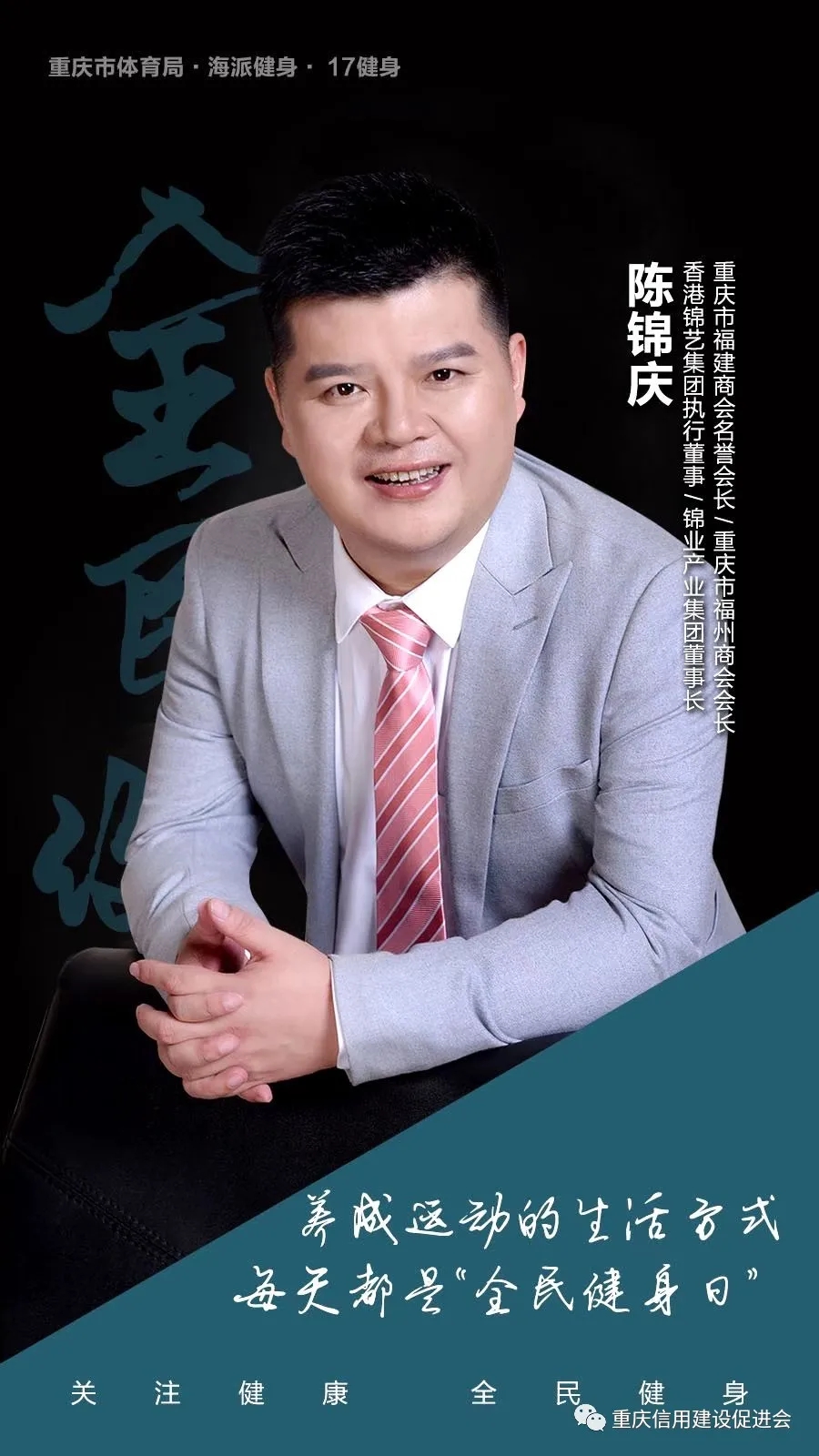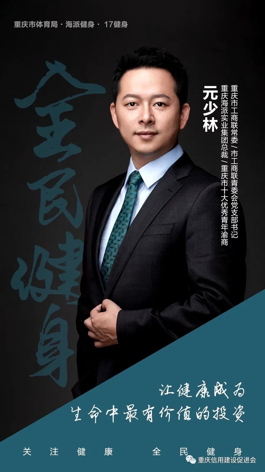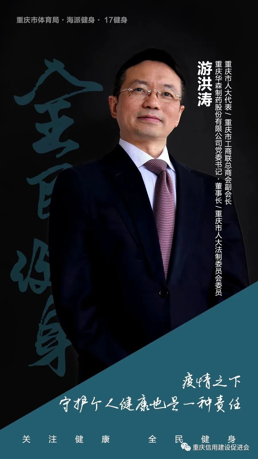 2020年8月8日是第12个“全民健身日”,结合当前疫情防控形势,以“全民健身日”为契机,在重庆市体育局、重庆市社会体育指导中心的指导与支持下,西南健身连锁领军品牌——海派健身携17健身,联合重庆市人大代表、市工商联(总商会)副会长、市非公有制企业信用建设促进会会长、重庆华森制药股份有限公司党委书记、董事长游洪涛,重庆市人大代表、市工商联(总商会)副会长、市非公有制企业信用建设促进会执行会长、学平大健康产业集团有限公司董事长彭学平等16位重庆本土知名民营企业家共同行动,进行“关注健康 全民健身——民营企业家助力健康中国”线上主题展示活动。