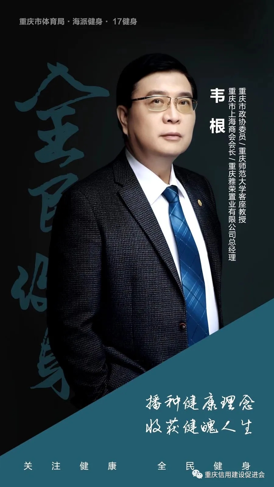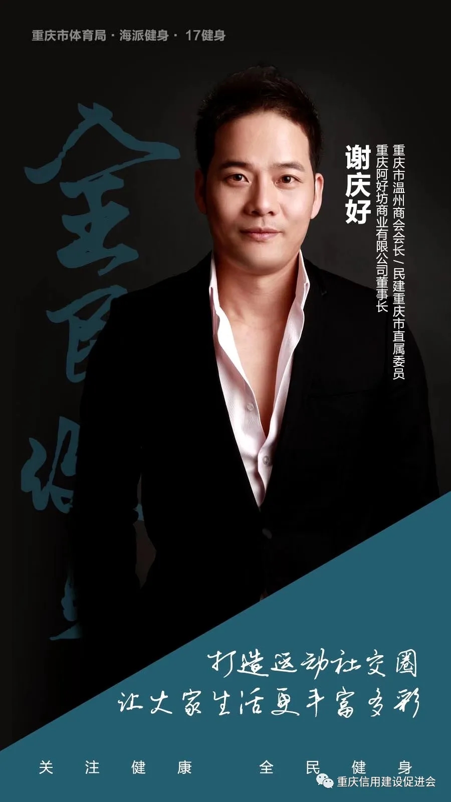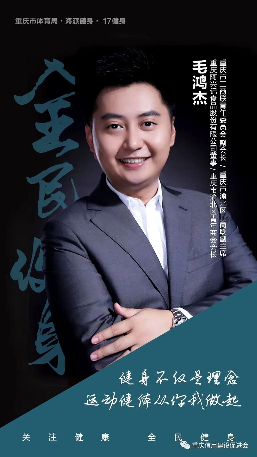 2020年8月8日是第12个“全民健身日”,结合当前疫情防控形势,以“全民健身日”为契机,在重庆市体育局、重庆市社会体育指导中心的指导与支持下,西南健身连锁领军品牌——海派健身携17健身,联合重庆市人大代表、市工商联(总商会)副会长、市非公有制企业信用建设促进会会长、重庆华森制药股份有限公司党委书记、董事长游洪涛,重庆市人大代表、市工商联(总商会)副会长、市非公有制企业信用建设促进会执行会长、学平大健康产业集团有限公司董事长彭学平等16位重庆本土知名民营企业家共同行动,进行“关注健康 全民健身——民营企业家助力健康中国”线上主题展示活动。