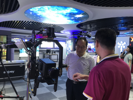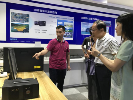超高清视频(四川)制作技术协同中心政企业务部总监吴成志带领钟吕坤主任和邓强英秘书长参观了协同中心的8K实验室展厅,钟吕坤主任重点了解了8K摄像机,8K超高清大场景应用,8K行业应用平台和专业的传输平台。