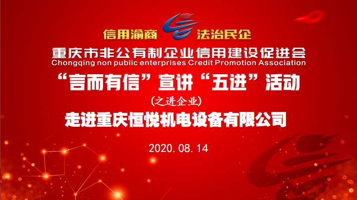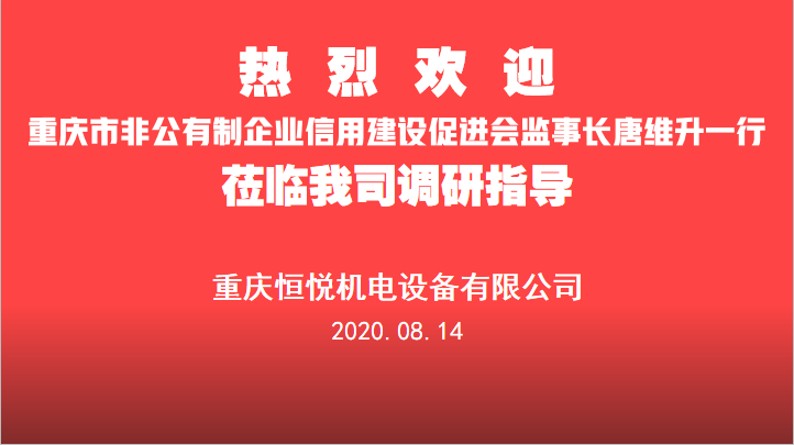 为引导会内会外守法诚信、守正向上,培养全社会“知信用、讲信用、用信用”的行为自觉,扩大“信用渝商”的践行力度和信用共建的试点实效,按照我会一届二次会员大会暨一届四次会长会议审议通过的2020年下半年工作重点事项,8月14日下午,重庆市非公有制企业信用建设促进会监事长、重庆销业家装饰工程有限公司董事长唐维升一行赴会员单位重庆恒悦机电设备有限公司开展“复工复产当先锋”主题调研活动。