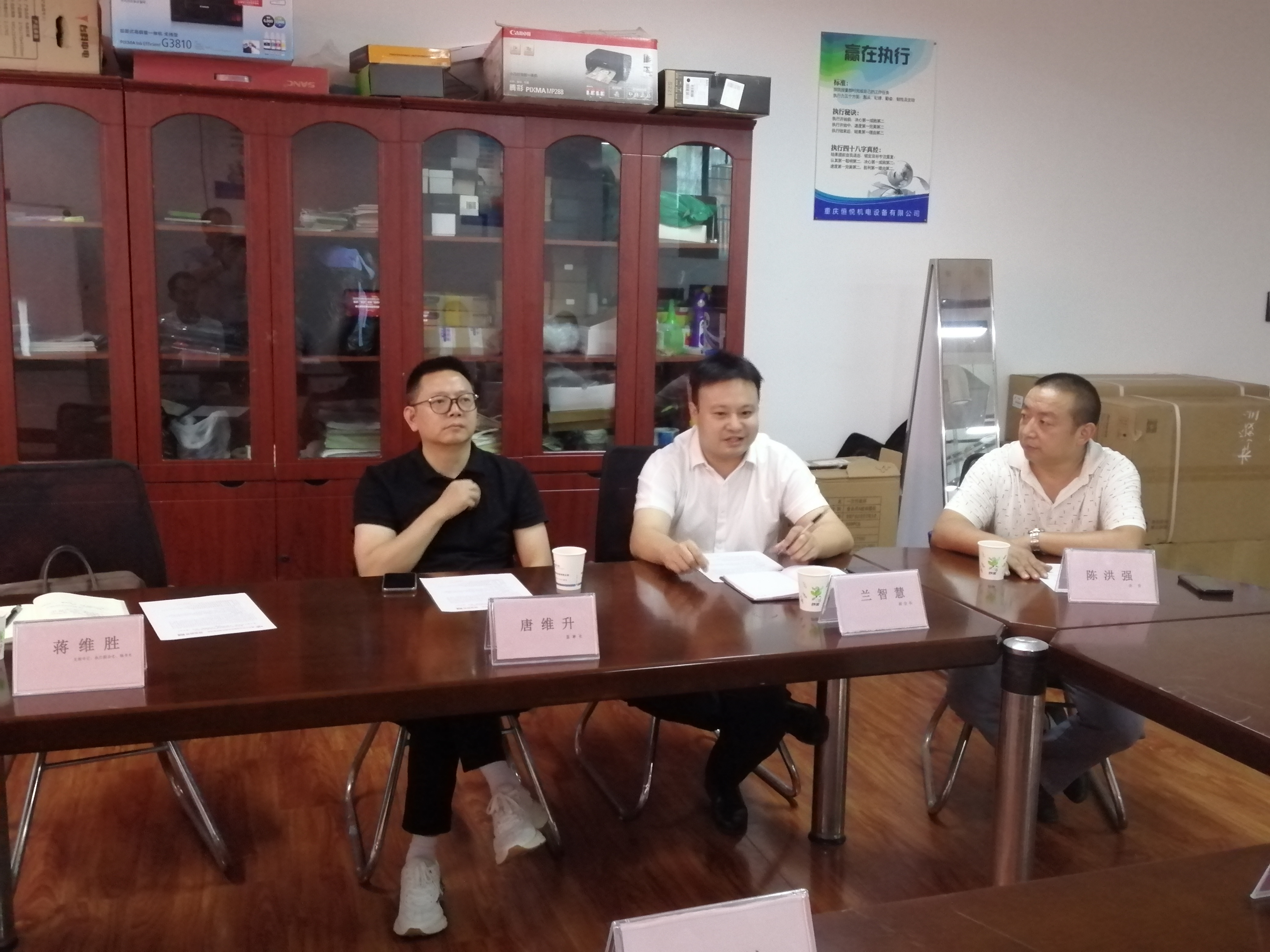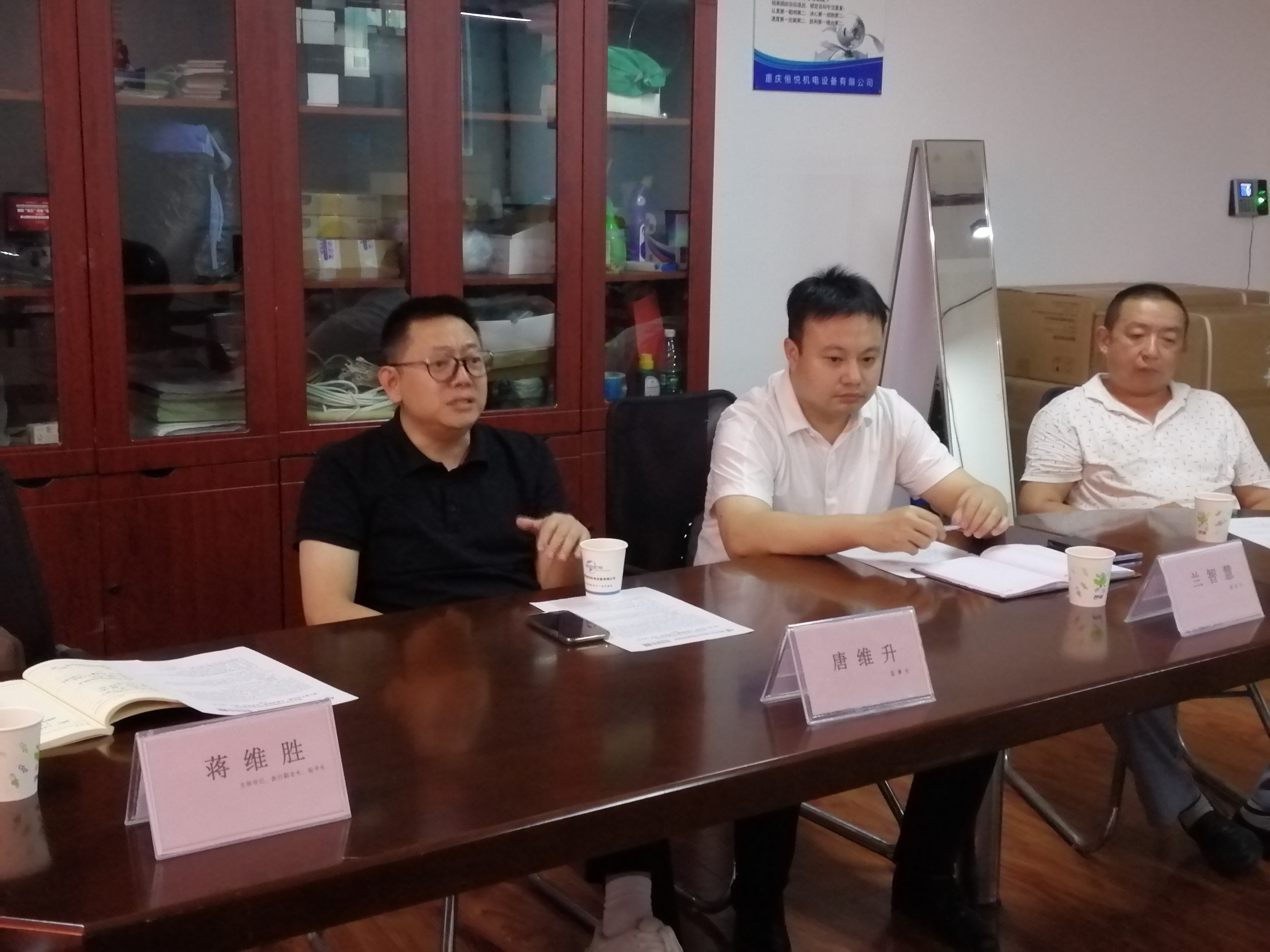 促进会党支部书记、执行副会长兼秘书长、增信企业管理咨询重庆有限公司总经理蒋维胜,副会长、重庆静昇律师事务所高级合伙人、律师兰智慧,会员,重庆志达致冷设备有限公司总经理陈洪强一同参加此次走访调研。