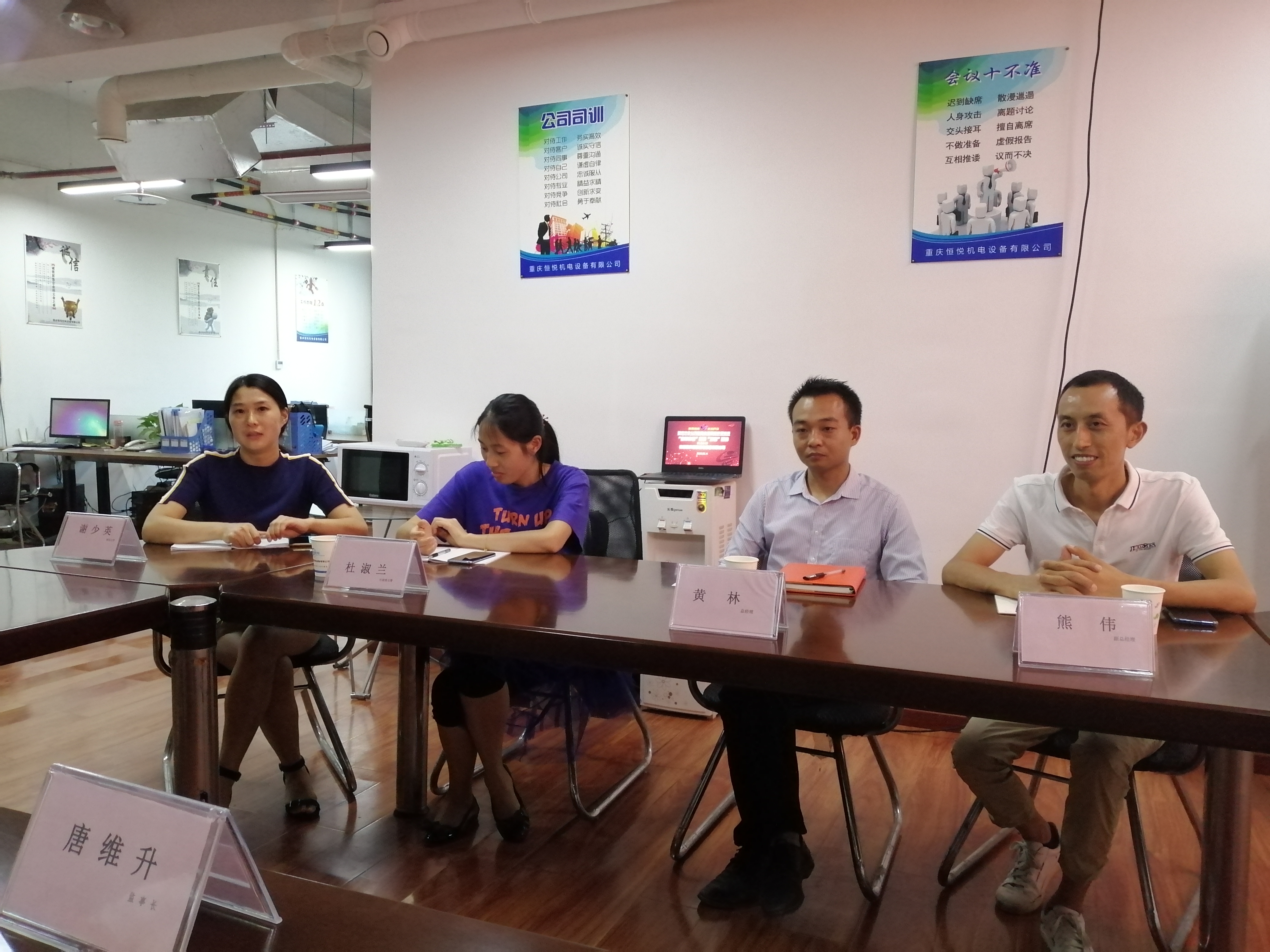 接着,在恒悦机电设备公司的会议室,黄林总经理对促进会监事长唐维升一行顶烈日、冒酷暑莅临企业指导,表示最热烈的欢迎和最衷心的感谢。