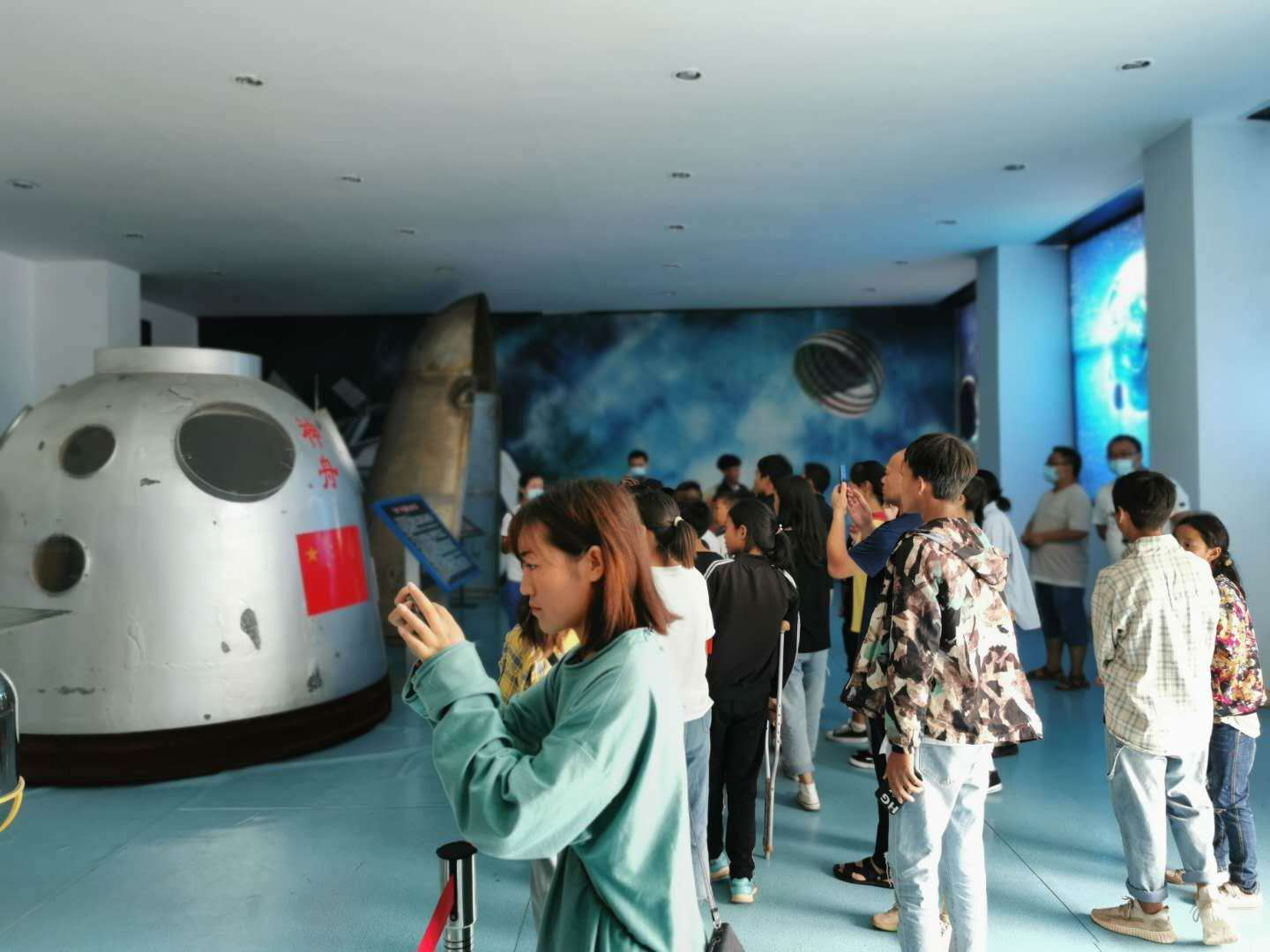 在卫星发射中心,学生们近距离参观了发射塔及相关场站,仔细听取了导游的介绍,随后体验了奔月索道的飞翔感受,参观了火箭发动机和整流罩等回收的火箭发射残骸实物以及玉兔月球车、卫星、神舟飞船等航天样本,通过虚拟现实技术体验了从发射到登陆月球的全过程。