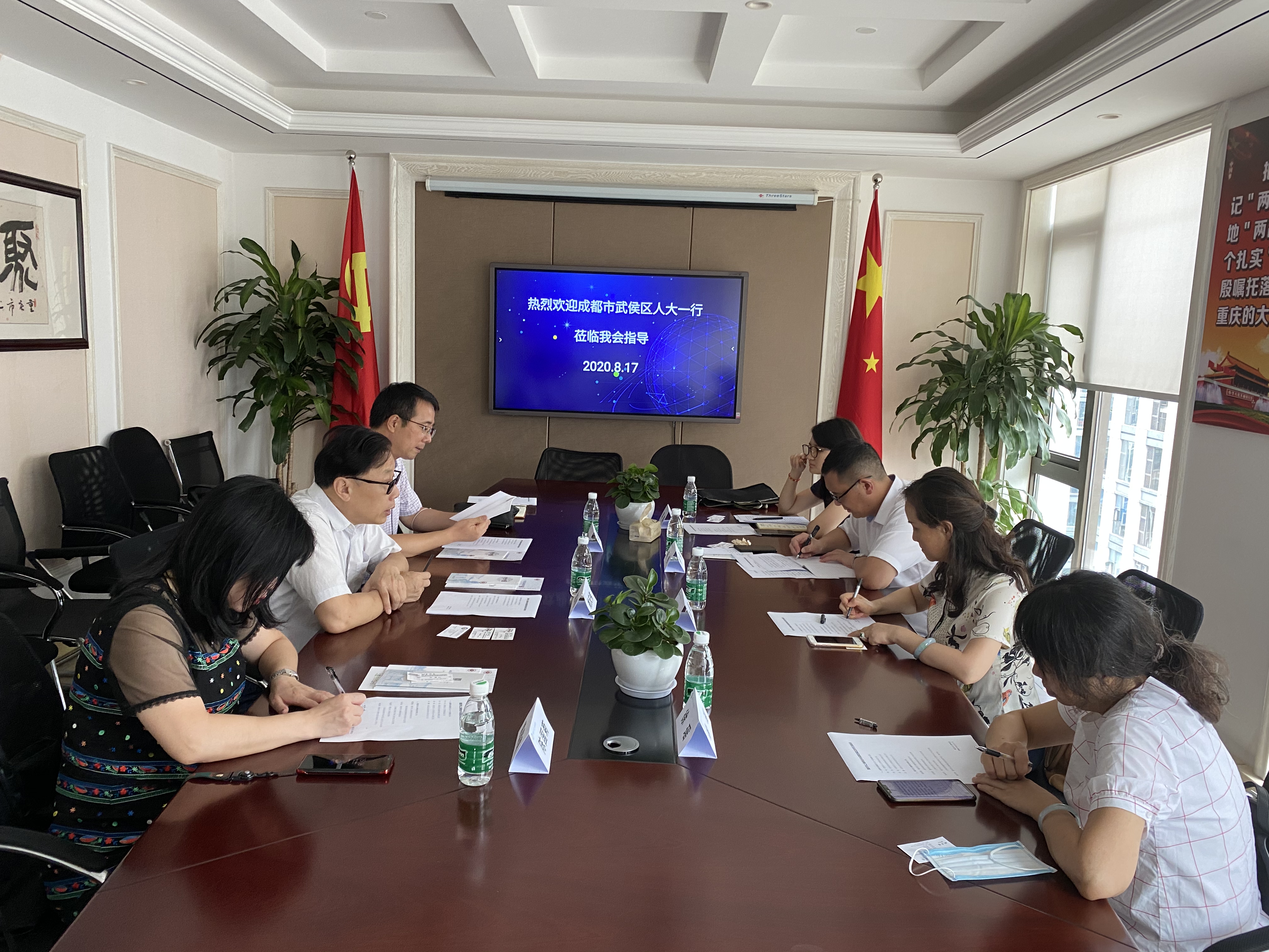 2020年8月17日下午,成都市武侯区人大常委会副主任钟鸣一行莅临我会,我会常务副会长、重庆竣品佳园林绿化有限公司总经理陈国菊,秘书长姚庆伟,副会长、上海东吴医疗净化工程有限公司董事长双伟忠共同接待并交流座谈。