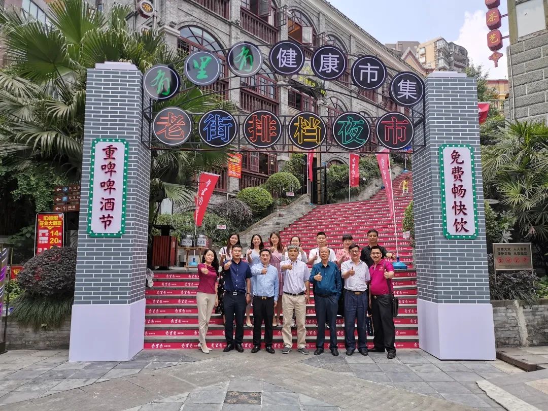 座谈结束后,在重庆市四川商会会长、成都中医大灵素医院管理股份有限公司董事长刘达平会长的带领下,商会一行参观了刘达平会长公司开发的位于南坪西路的重庆映像街区项目。这是以江北城复古建筑为主,集休闲、旅游、特色餐饮、中医养生和购物为一体的原滋原味的巴渝文化主题街区,恰逢街区“有里有”健康市集开市,各种消夏美食和琳琅满目的特色商品,让街区分外热闹。