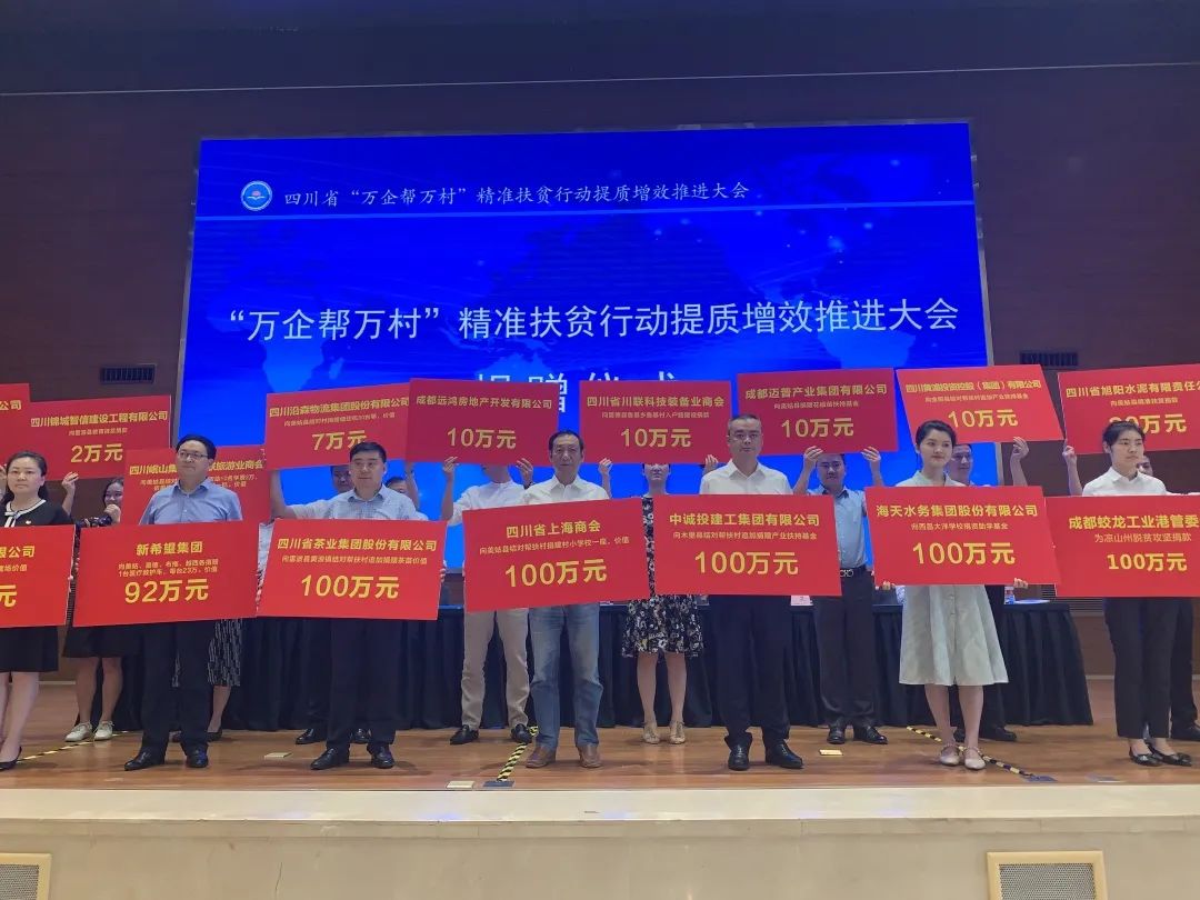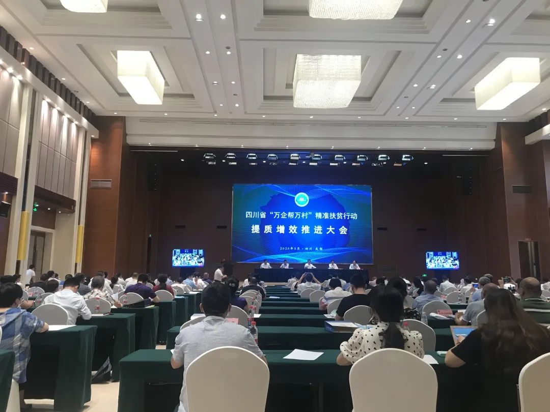 会议传达学习了中央决战决胜脱贫攻坚座谈会和全省决战决胜脱贫攻坚推进会议精神,组织了现场捐赠、签约仪式。中国农业发展银行四川省分行副行长徐攀斌通报了2019年支持“万企帮万村”融资情况及2020年相关金融支持政策;四川省工商联党组成员、副主席赵宇通报了四川省“万企帮万村”精准扶贫行动领导小组成员调整情况。会上,帮扶企业、商会和地方工商联的代表进行了经验交流发言。