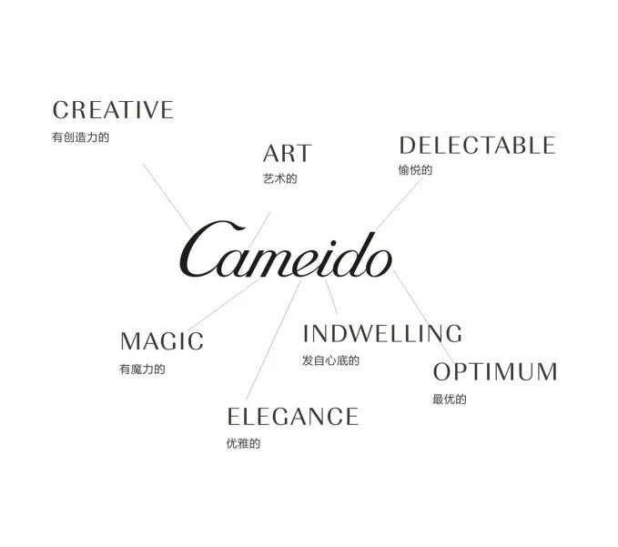 2.整个标志呈现典雅而清新的个性,把女性的神秘、性感融合到现代而抽象的笔触中,兼具感性和知性,彰显国际化的品牌个性,倡导 CAMEIDO快速时尚的商业概念。