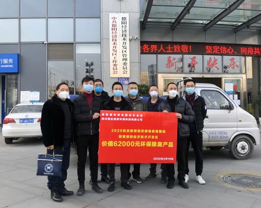 尽己所能,共同战“疫”。2月15日,德阳重庆商会副会长、四川双鑫电气股份有限公司董事长兼总经理谭达双来到德阳市旌阳区孝感街道办事处,向当地政府捐赠价值22000元防疫物资,同时代表公司职工捐款5360元。他的这一善举受到了孝感街道办事处党委书记徐昌明、主任钟传荣的高度赞扬。在周密的安排和部署下,目前公司正朝着“防疫情、促复产”方向良好发展。2月26日,德阳重庆商会副会长、四川盟达谊家环保科技有限公司总经理毛久林向德阳市市容环境卫生管理处捐赠价值42000元的环境除臭和扬尘抑制产品。2月29日,该公司总经理毛久林又向德阳国家经济技术开发区捐赠价值62000元的环保除臭剂产品,用科技的力量保护德阳市环境卫生。参加本次捐赠活动相关领导有德阳经开区领导郝勇(副主任)、张科、谢其坤等,德阳重庆商会会长刘树华、党支部书记张治文、秘书长涂起宏等。