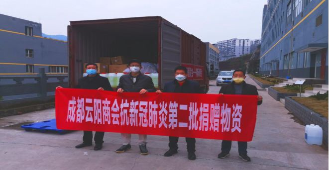 戮力同心,持续战“疫”。目前,云阳县的疫情排名仍居重庆市区县的前三名,严峻的防疫形势下防疫医用物资短缺的状况,让远在千里之外的成都云阳籍企业家们分外担忧。商会李文端会长、刘东辉秘书长会同商会领导紧急商议,克服各种困难,多方联络筹措第二批防疫医用物资,终于在2月21日,将家乡紧缺的“口罩、手套、消毒液”等医用物资筹措到位。2月22日凌晨,成都云阳商会刘东辉秘书长带领执行会长汤涯、副会长刘念,从成都出发驱车570多公里,将商会援助家乡的第二批防疫医用物资运抵重庆市云阳县。成都云阳商会领导表示,树高万丈不忘根,人若辉煌不忘本,全体会员要始终牢记自己是云阳人,永远不忘云阳水土的养育之恩!大灾大难面前,全体会员要心系家乡、牵挂亲人,与家乡父老乡亲同呼吸、共患难、心连心。当前,疫情仍未消散,家乡的各级领导和父老乡亲们还在继续与疫情作最后的搏斗。我们坚信,有县委县政府的坚强领导,有乡镇村的层层严密防控,有全县人民的全力支持配合,家乡一定能打赢这场新型冠状病毒肺炎疫情的歼灭战。
