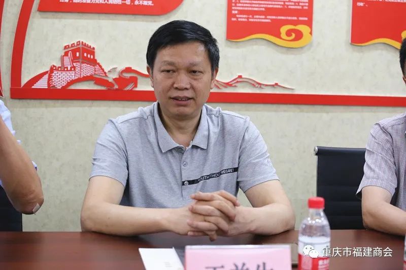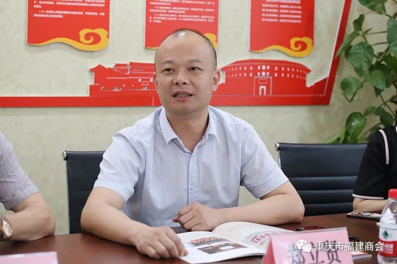 常务副会长陈元世对商会情况作了介绍。重庆市福建商会前身是重庆闽南经贸促进会,于2009年正式批准成立,是重庆市第一家挂牌成立的商会。商会在黄祖仕会长、执行会长许继先等第八届领导班子带领下,秘书处在会务发展、抱团合作、经济平台、慈善公益、助推“一带一路”和成渝双城经济圈建设等方面取得了较大成绩。在渝闽两地政府的关怀下,商会以“融入重庆、植根本地”为理念,已经实现由小到大,由弱到强的转变。陈元世表示,商会秘书处围绕两个重点开展工作,一是以商会品牌建设为重点不断扩大影响力。商会在市政府和市工商联带领指导下,团结在渝闽商,充分发扬“三分天注定、七分靠打拼”的闽商精神,为重庆经济发展做出了积极贡献;商会还致力于慈善事业,多年来先后开展了“爱心支教”、“中国梦·闽商情”、“寻找最美乡村教师”、设立“重庆市福建商会千万慈善基金”等公益慈善活动,累计捐款超亿元,尤其是新冠肺炎疫情爆发以来,商会秘书处反应迅速,会长黄祖仕带头捐款,会员积极响应,募集善款190余万,为保障企业复工复产商会秘书处还积极为会员企业筹备抗击疫情物资,引起强烈社会反响,进一步提升了商会的影响力;二是以服务会员为重点不断提升会员凝聚力。要想提高凝聚力,就得实实在在帮助会员解决困难多开展有意义的活动。今年先后多次帮助会员企业协调解决纠纷问题,通过发函等方式积极联系地方政府及纠纷双方,多措并举的为会员协调纠纷反映诉求,进一步提升了商会的服务能力。最后,陈元世强调,只有商会的品牌做大做强了,才会有利于会员企业的发展,在渝闽商用汗水浇灌收获,以实干笃定前行,齐心协力共同开创闽渝发展的新局面。希望未来商会能与福清市政府和各商会建立长期友好合作关系,进一步加深了解、增进友谊,加强信息互通、资源共享、互惠共赢。