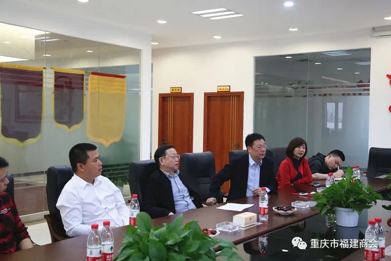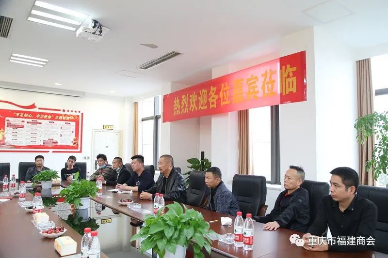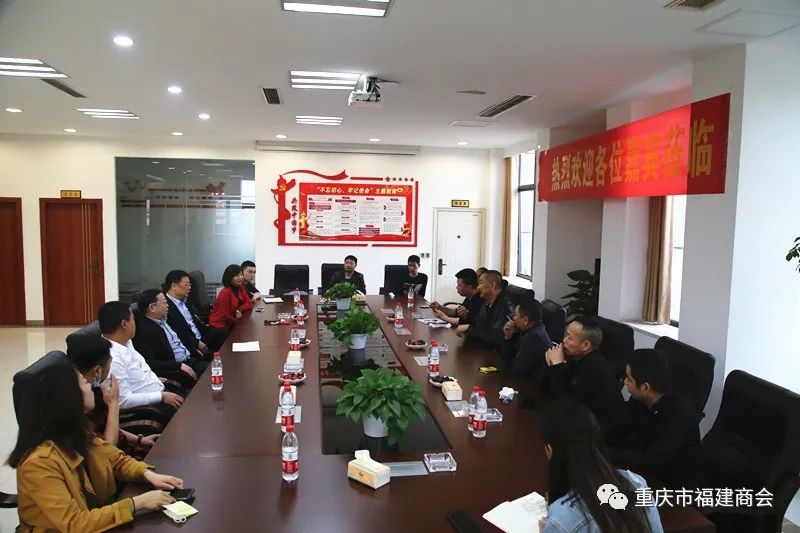 商会走访团首先来到名誉会长单位重庆渠成实业有限公司开展调研,这是交流座谈结束后合影留念。