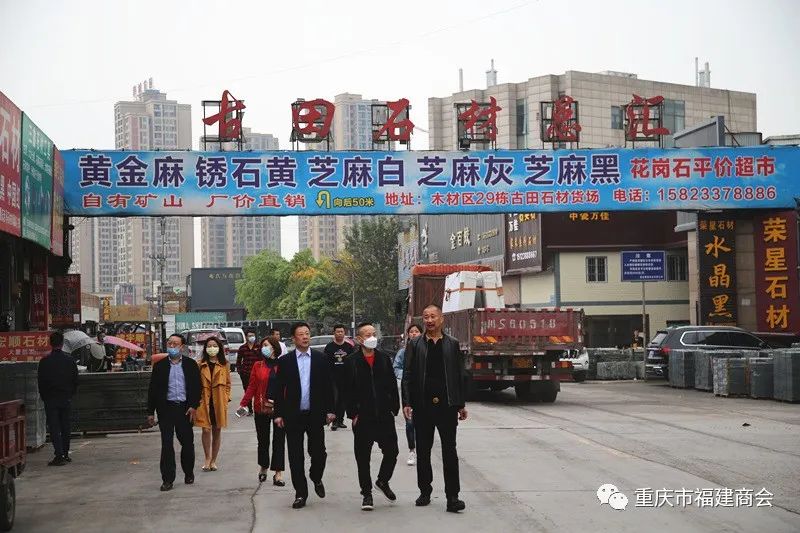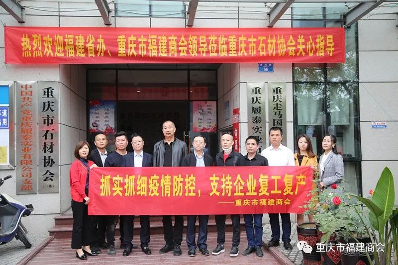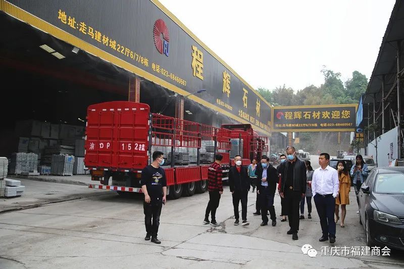为助力闽商企业做好疫情防控和经济社会发展工作,坚决打赢疫情防控阻击战,重庆市福建商会秘书处近期将持续开展会员走访工作。4月20日下午,商会常务副会长陈元世,副会长肖鸿广、林兆庆,副秘书长邓良平与福建省政府驻重庆办事处主任、福建省派驻重庆市入境口岸工作组组长陈朝安一行,前往位于江津区走马石材市场进行实地考察调研,详细了解疫情防控和企业复工复产有关情况,倾听需求,为会员企业提供切实的服务。