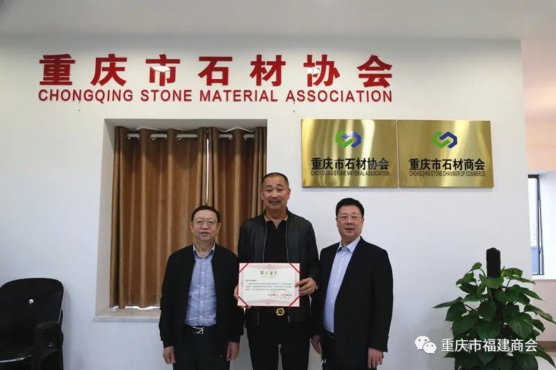 在抗击新型冠状病毒感染的肺炎疫情蔓延的艰难时刻,重庆市石材协会募集捐款21.7万元助力抗疫防控,这是陈朝安主任和陈元世会长代表市慈善总会和福建商会向石材协会颁发荣誉证书。