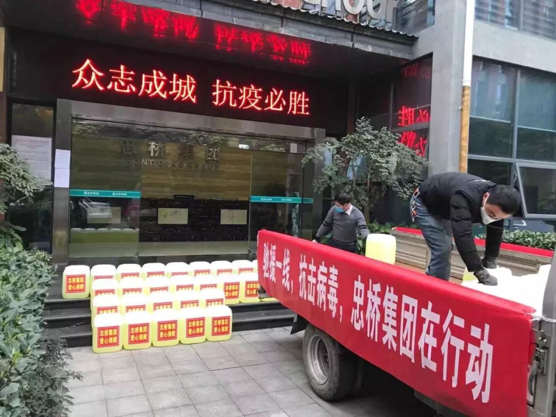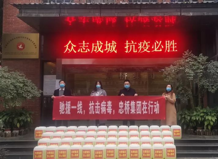 积极作为,奉献爱心。疫情爆发初期,四川省重庆商会副会长、四川忠桥集团有限公司总裁姜柳华迅速响应,通过忠桥集团美国公司在全球联系抗疫物资生产厂家、供货渠道,特别为武汉、广东等地医疗机构牵线搭桥,为全力以赴奋战在一线的抗疫单位提供各种防疫物资采购渠道。面对当前疫情复杂严峻的形势,2月13日,姜柳华决定再次通过龙泉驿区红十字会向抗疫单位捐赠一批84消毒液,用作疫情期间消毒之用。成都市龙泉驿区政协景明友副主席、龙泉驿区商务局李久元副局长来到捐赠现场,为忠桥集团在国家有难时表现出来的勇于担当、勇于履行社会责任的精神给予了高度评价,希望忠桥集团在抗疫阶段继续履行社会责任,为辖区作贡献,疫情结束后也能一如既往地践行社会责任。姜柳华在接受媒体记者采访时表示,捐赠抗疫期间急缺的防疫物资,这不仅是当代企业家应尽的社会责任,也是我们作为中国人,理应在祖国、在人民有难时,同舟共济,互帮互助,共渡难关。忠桥集团还将继续联络捐赠各项防疫物资,为抗疫工作尽一份绵薄之力。在积极联络、捐赠各项防疫物资的同时,忠桥集团也在第一时间召开疫情防控视频工作会议,要求集团具有电力供应、运行、维护责任的电力分公司在防疫期间,对有安全保障的重大防疫单位进行免费巡查、维护,确保电力供应,确保抗疫一线的电力安全。