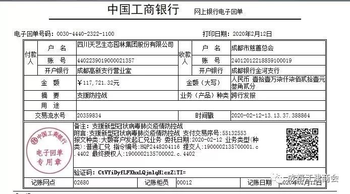 克服困难,主动担当。成都江津商会副会长单位四川齐力绿源水处理科技有限公司从2月8日陆续复工以来,就开始向都江堰市各大企事业单位、医院、农贸市场捐赠二氧化氯消毒剂。每天的捐赠量都在4吨左右,高峰时可达6吨。公司将根据疫情情况持续开展捐赠活动,预计将捐赠总价值40万元的消毒剂。考虑到武汉火神山医院和雷神山医院刚建成,需要除异味、杀菌以及除甲醛,公司目前正在加紧生产相关物资,预计总共向武汉捐赠二氧化氯缓释剂5000瓶、片剂5000瓶,总价值约30万元。目前,成都江津商会常务副会长单位天艺园林集团通过成都市慈善总会定向捐款117721.32元,用于支援新型冠状病毒肺炎疫情一线防控。