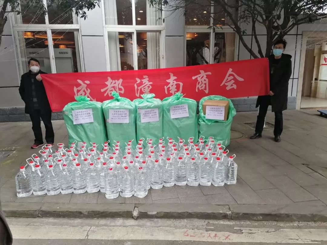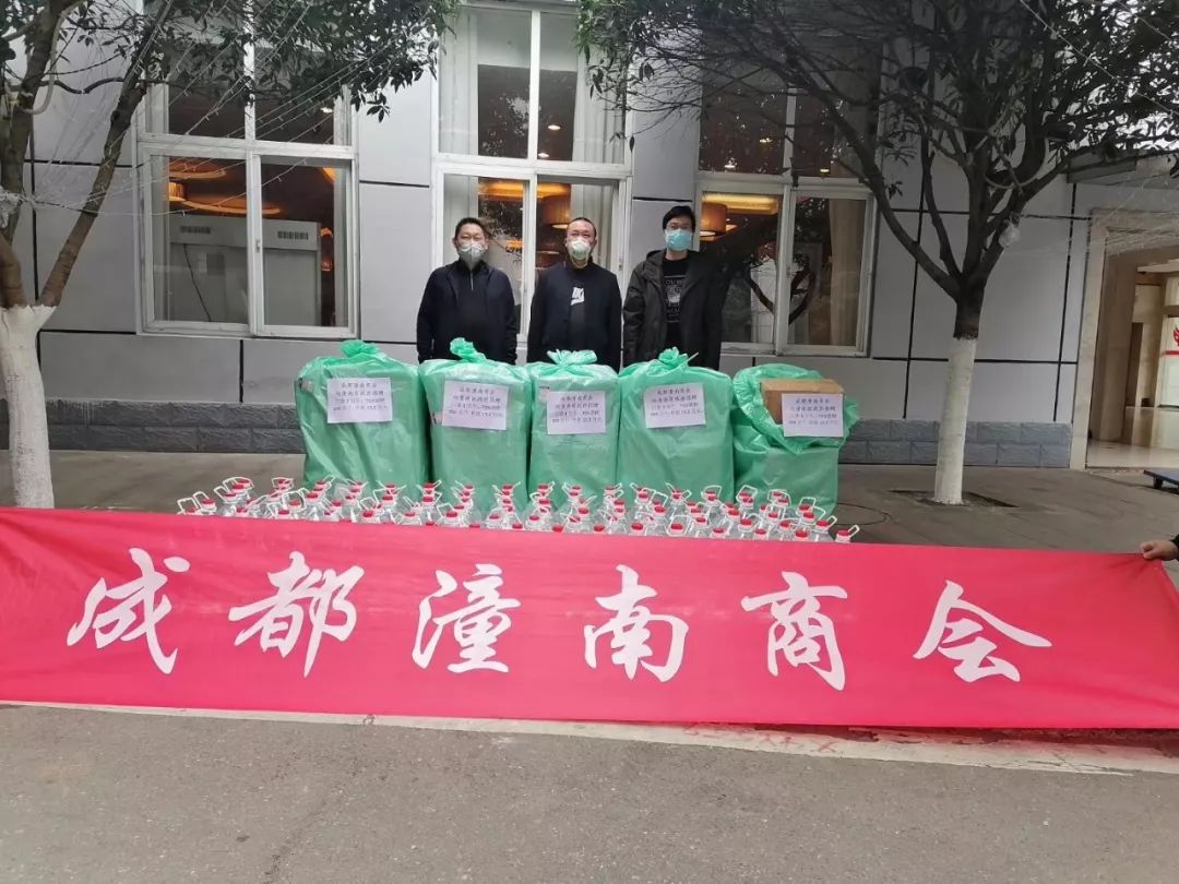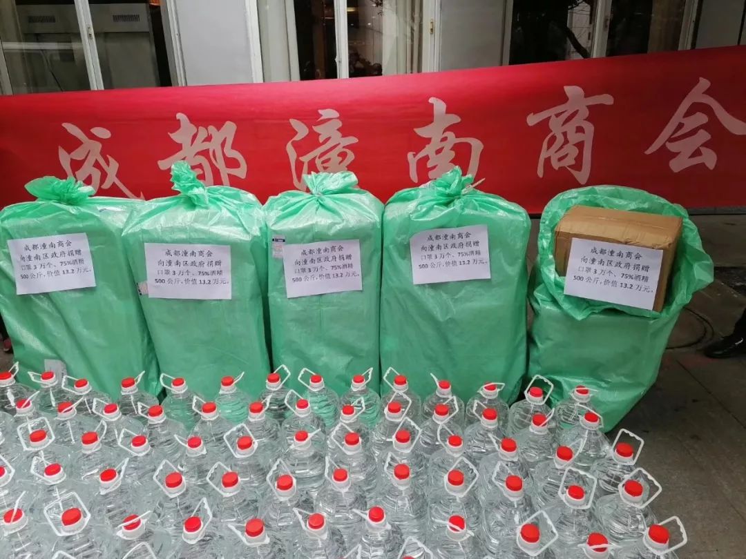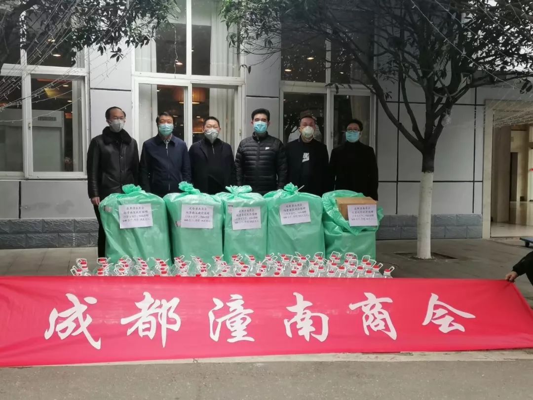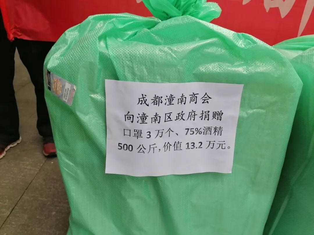 心系家乡,共同战“疫”。四川省重庆商会潼南分会(成都潼南商会)在得知家乡防疫形势严峻时,在会长吕状文(四川省重庆商会会长)的号召下,一场上下齐心、不辞辛劳、精心组织、踊跃参与的爱心接力迅速展开,商会先后筹集资金和物资价值共达58万余元,分批次送达潼南区援助抗疫。2月13日上午,成都潼南商会第三批援助物资送达潼南,这次捐赠医用口罩30000只、75%消毒酒精100桶500公斤,合计价值13.2万元。商会常务副会长陈根平(四川省重庆商会常务副会长)受吕状文会长委托,带队进行捐赠。陈根平表示,成都潼南商会与家乡人民同心同德同奋进,商会也时刻用情用智用力为家乡人民作贡献,大爱无疆、无私奉献,这就是我们企业家精神,也是我们潼商精神。商会副会长唐轲、理事夏荧参加捐赠,潼南区政府副区长陈建华、区政协副主席向明和抗疫指挥部接受了捐赠。