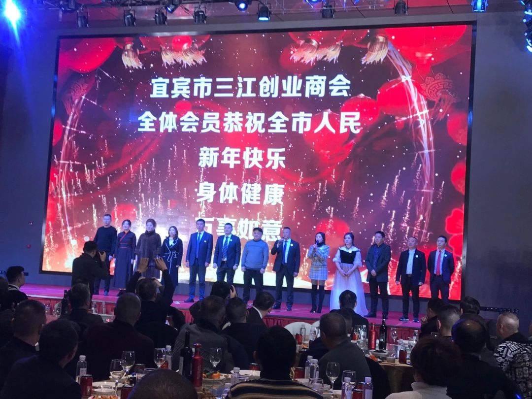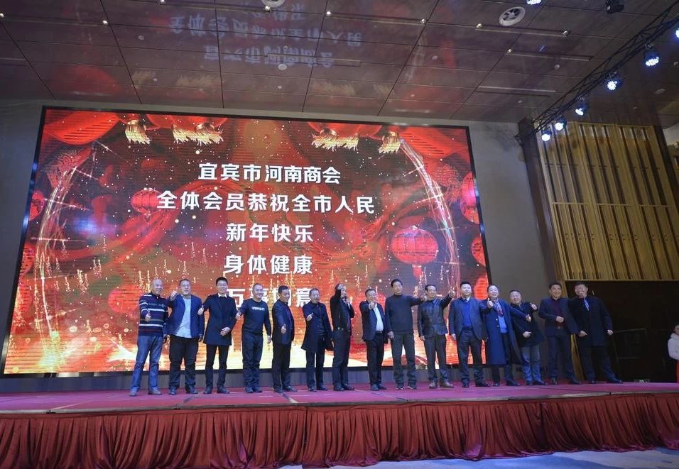 宜宾市河南商会,是河南省在宜企业家们经济合作、交流的新途径、新平台。河南商会会长携商会会员上台祝酒,并为大家带来新年的祝福。