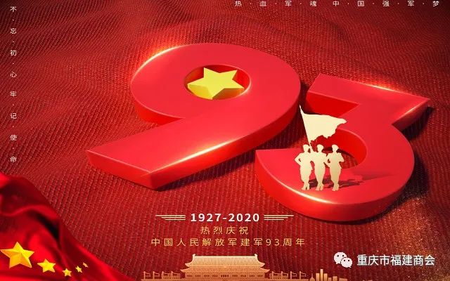 值此建军93周年之际,重庆市福建商会向中国人民解放军致以最崇高的敬意和诚挚的祝福。