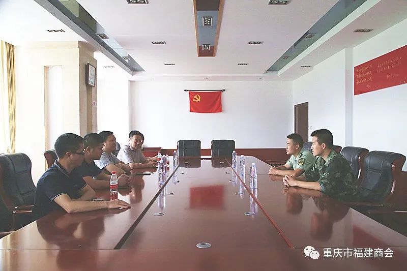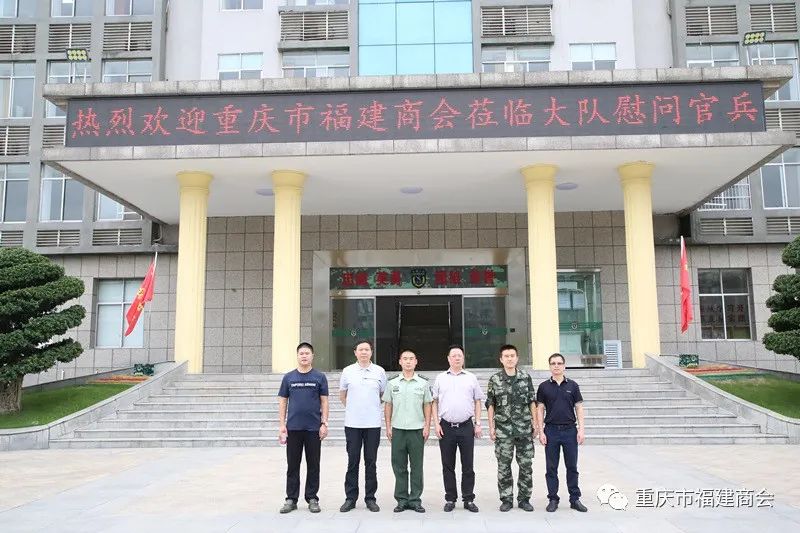 7月31日下午,在中国人民解放军建军93周年即将来临之际,重庆市福建商会常务副会长陈元世、林兆强,副会长陆代源,福建省人民政府驻重庆办事处副主任王益生赴驻渝武警某支队开展“商会进军营•共建鱼水情”八一拥军慰问活动,向武警官兵们致以节日的问候,并为他们送上慰问物资。