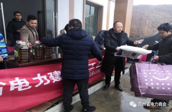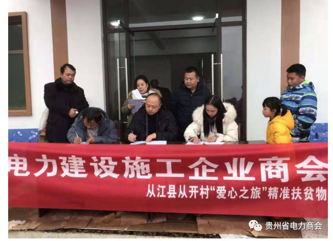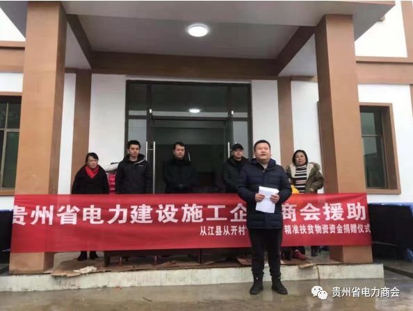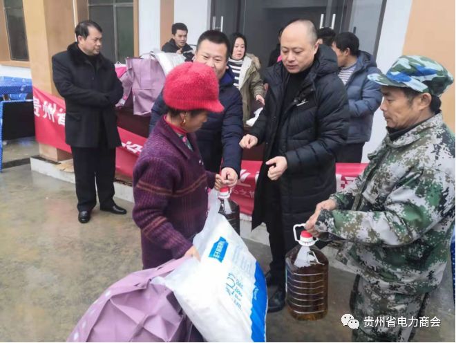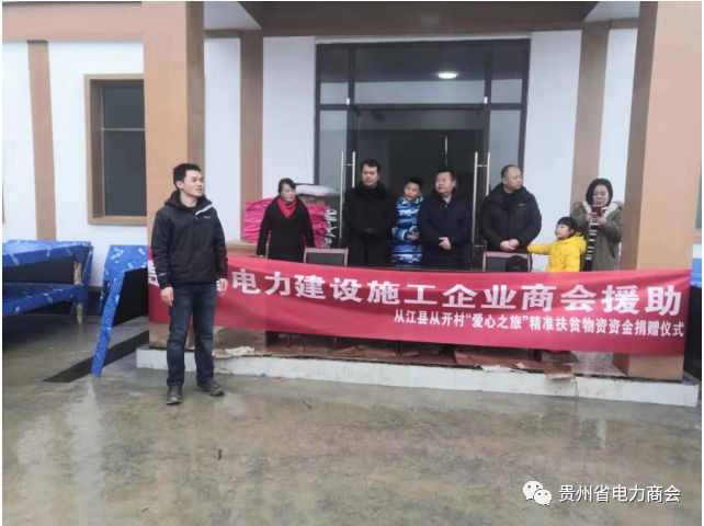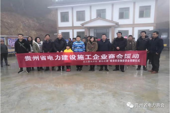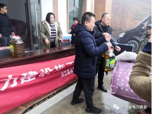 2020年1月13日,在新春佳节来临之际,贵州省电力建设施工企业商会为深入推进脱贫攻坚工作,由贵州省电力建设施工企业商会党支部书记田野,秘书长刘勋带着商会企业的爱心携物资:木床44张、床上用品50套(垫被、冬被、枕头、套件)、食用油50桶、节能灯334盏,价值35894元;发放孤寡老人慰问金4000元、帮扶5名特困大学生助学金80000元,共计12万元现金及物资来到从江县从开村进行爱心捐赠,为贫困村村民送去商会的爱心与温暖。
