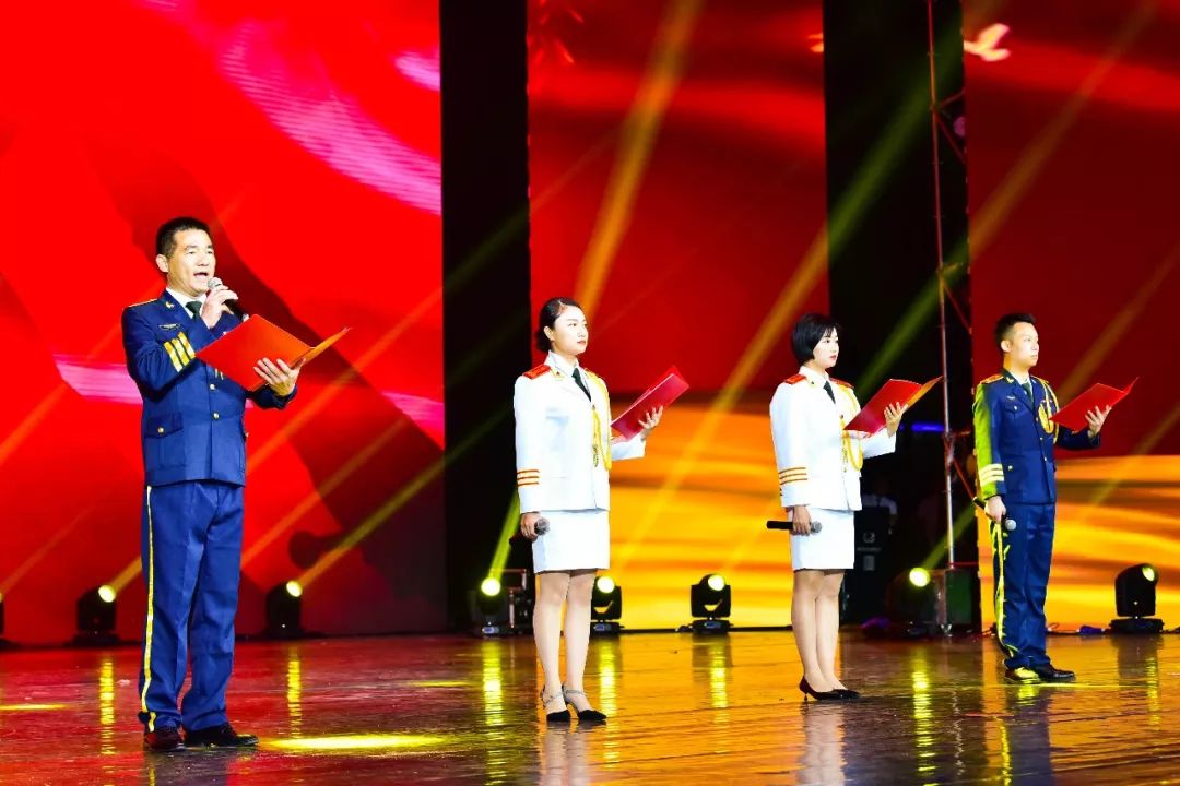 百人大合唱《人民军队忠于党》,铿锵的旋律、高亢的歌声、磅礴的气势、豪迈的情怀,让听者与历史对话,使歌声与心声交响,军旗漫卷,浴血荣光,现场气氛迅速升温,人人感受到强大的正能量。嘹亮的军歌拉开了文艺汇演的帷幕。
