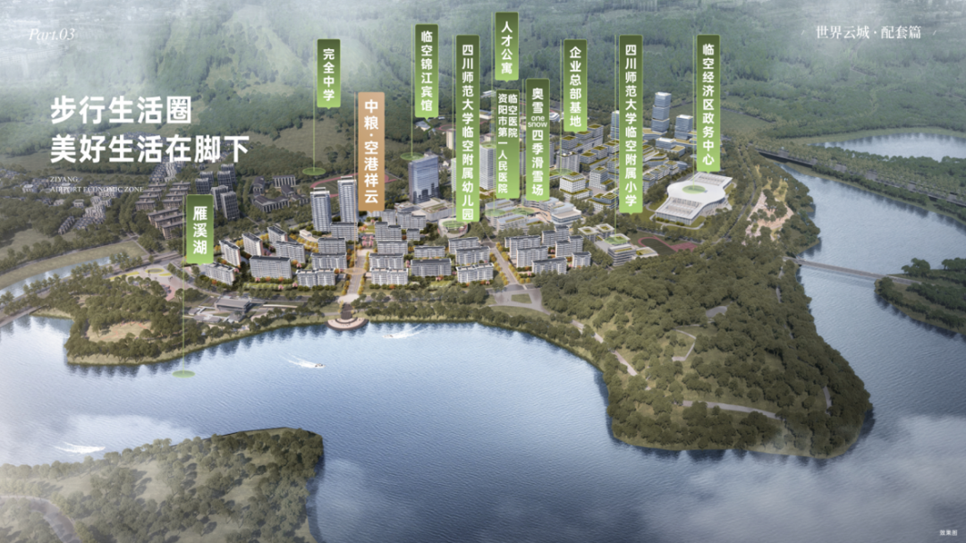 中粮.空港祥云,这是一座天府机场旁的湖畔公园城,天府临空经济区战路定位为国家级内陆临空经济发展示范区,规划面积298平方里,重点发展航空物流与口岸贸易、临空高端制造、临空现代服务及科技创新与果转化产业。作为直连成渝的双门户",承接大量人口红利和产业外溢。仕净科技、星河动力、Keeway、.毯凡创新、因诺科技、九天中创、光为通信等已相继入驻投产,吸引了大量行业高精尖人才入驻,推动区域价值提升。且临空雁溪生态城,因其适宜的机场距离、成渝双城的重要交通节点、得天独厚的自然优势,打造产城结合,山水相容“的宜居宜业的公园城。