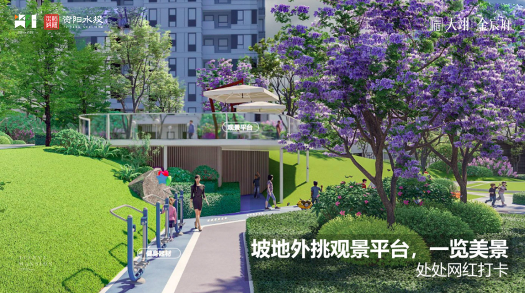 天翊.金宸府177亩的占地属资阳单盘规模最大,小区绿化率超35%,4个标准足球场,百米景观中轴,镜面水景,银杏树林,蓝花楹林,流水花阶,梯步回转,樱花相伴,漫步其中好不惬意。