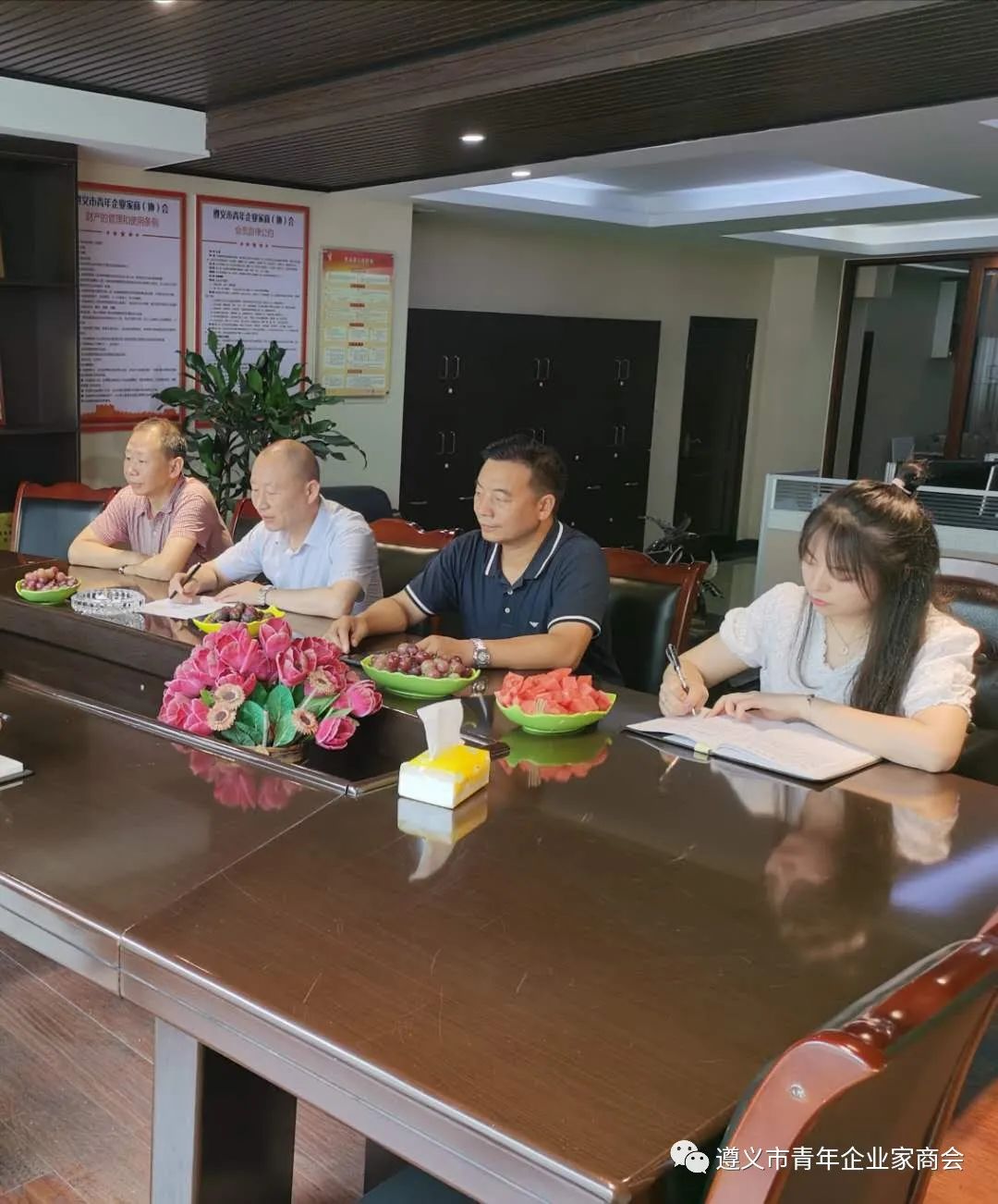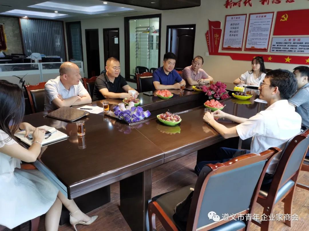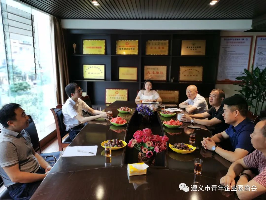 2020年6月30日上午,共青团遵义市委党组副书记、副书记张蒙 、青年发展与社会联络部部长张䶮新莅临遵义市青年企业家商(协)会调研并与商(协)会代表进行座谈。遵义市青年企业家商(协)会会长刘旭飞,党支部书记、执行会长冯光强,常务副会长徐达宝,副会长王德强,张勇,秘书长朱丽参加座谈。