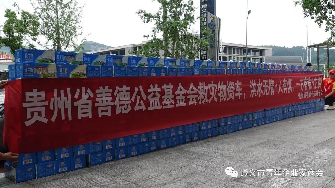 在突如其来的洪灾面前,我们万众一心、众志成城战胜一切灾难!灾难无情人有情!遵义市青年企业家商(协)会和贵州省善德公益基金会一起为高坪灾区群众送去金紫阳方便面500件、遵义纯牛奶400件、新鲜面包大件150件,合计金额4.5万余元。