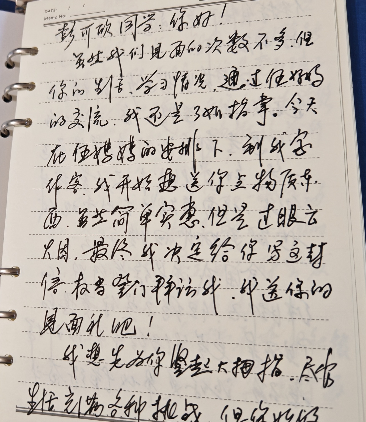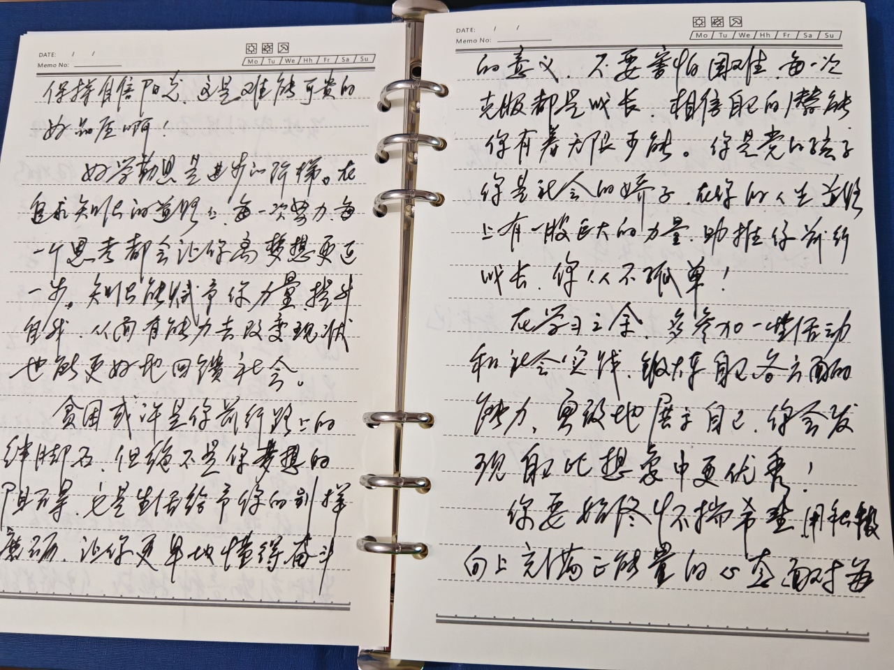 韦根特意邀请可欣到家中做客,送上了暖心红包,还提笔写下一封饱含期许的信。他在信中写道:“好学勤思是进步的阶梯,每一次努力、每一个思考,都会让你离梦想更近一步,知识能赋予你力量,改变现状、也能更好地回馈社会;贫困或许是你前行路上的垫脚石,但绝不是你梦想的阻碍,这是生活给予你的别样磨砺,让你更早地懂得奋斗的意义;在学习之余,多参加活动和社会实践,锻炼自己各方面的能力,勇敢地展示自己,你会发现自己比想象中更优秀;你要始终怀揣希望,用积极向上充满能量的心态面对每一天;相信未来的你一定能凭借自己的努力过上美满幸福的生活,同时成为一名对社会有贡献的栋梁之材!”字字真挚,成为激励孩子前行的力量。