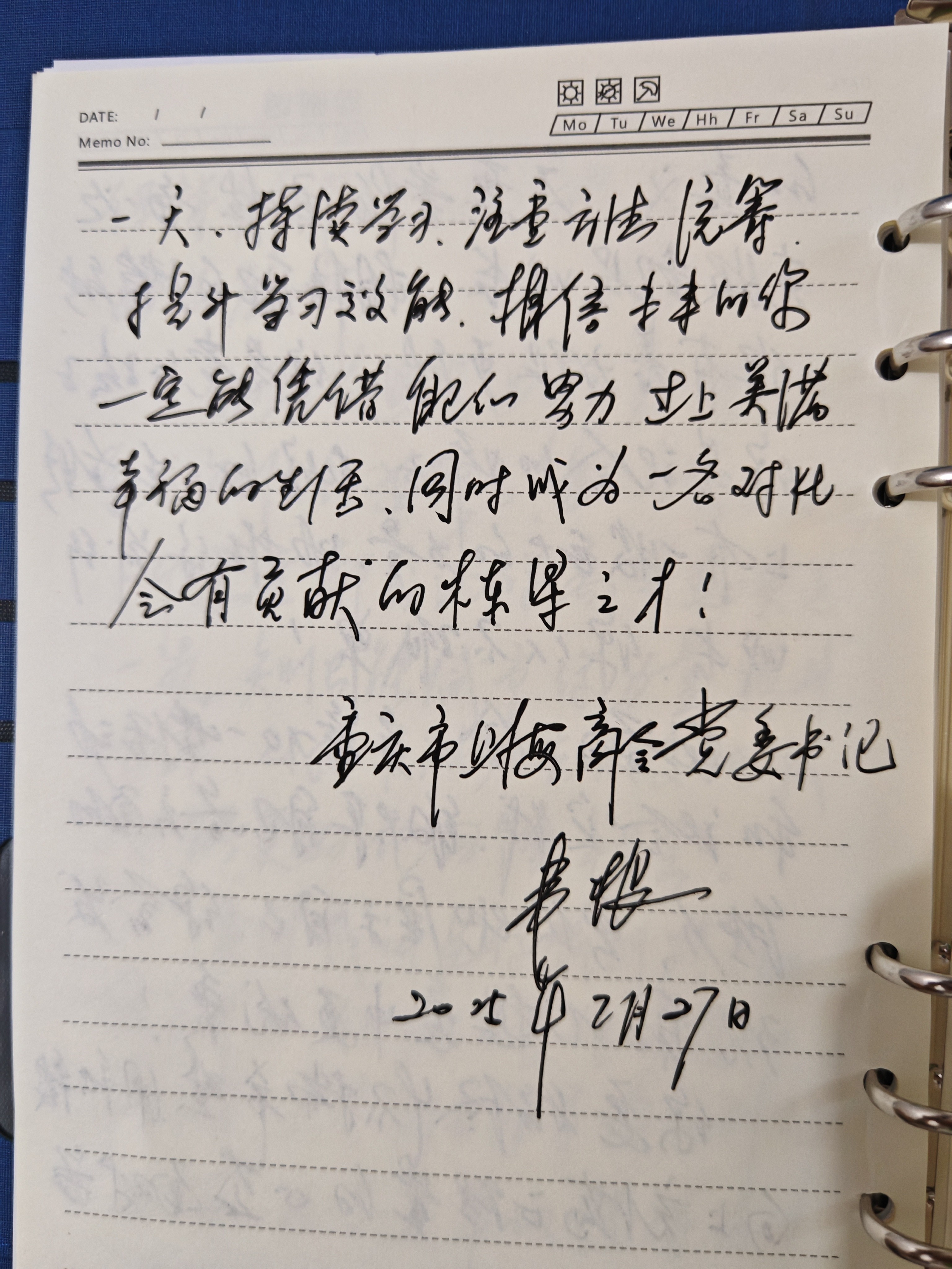 在重庆光大(集团)有限公司,吴一奕与可欣展开了贴心交流,送上精心挑选的书籍与暖心红包。她鼓励孩子要以自信为内核,坚信自身潜力无限,勇敢迎接成长中的每一次挑战;同时叮嘱道,学习是成长的基石,但并非唯一目标,要同步培养情商、智商、逆商与抗压能力,更要严守学生行为准则,远离不良场所、信息与习气,坚守道德法律底线,努力成为对社会有益的人。