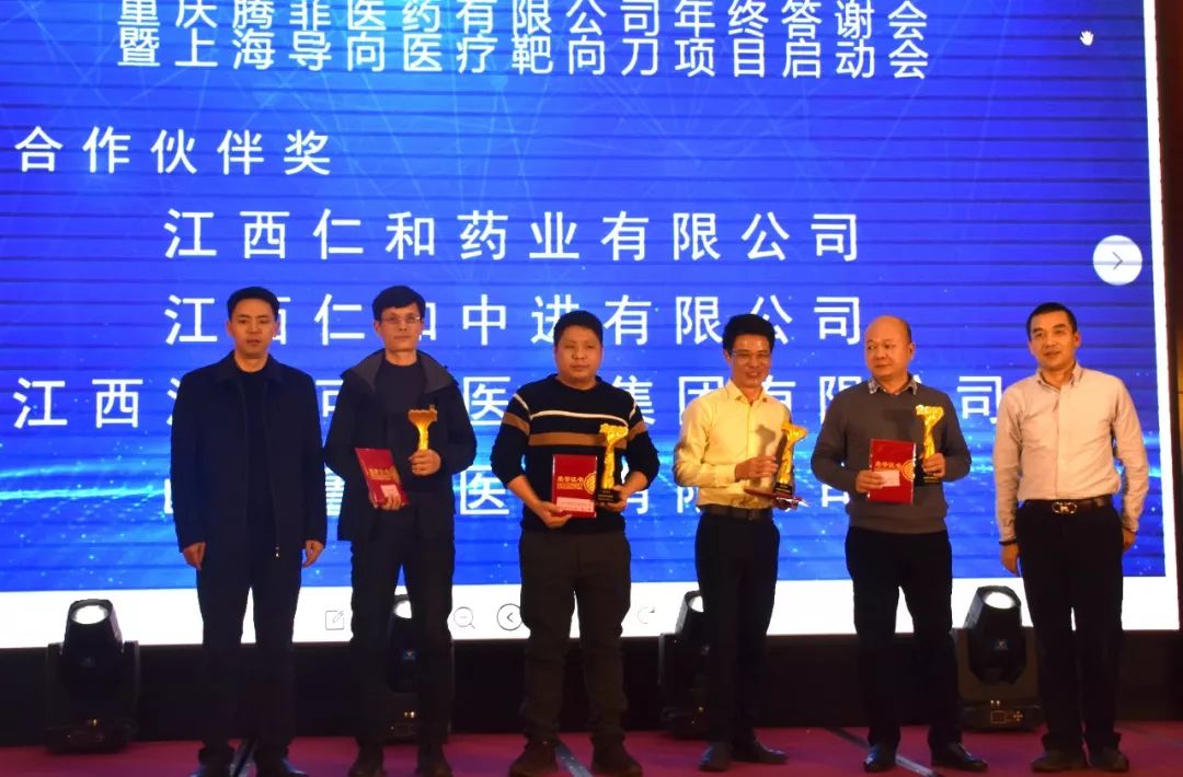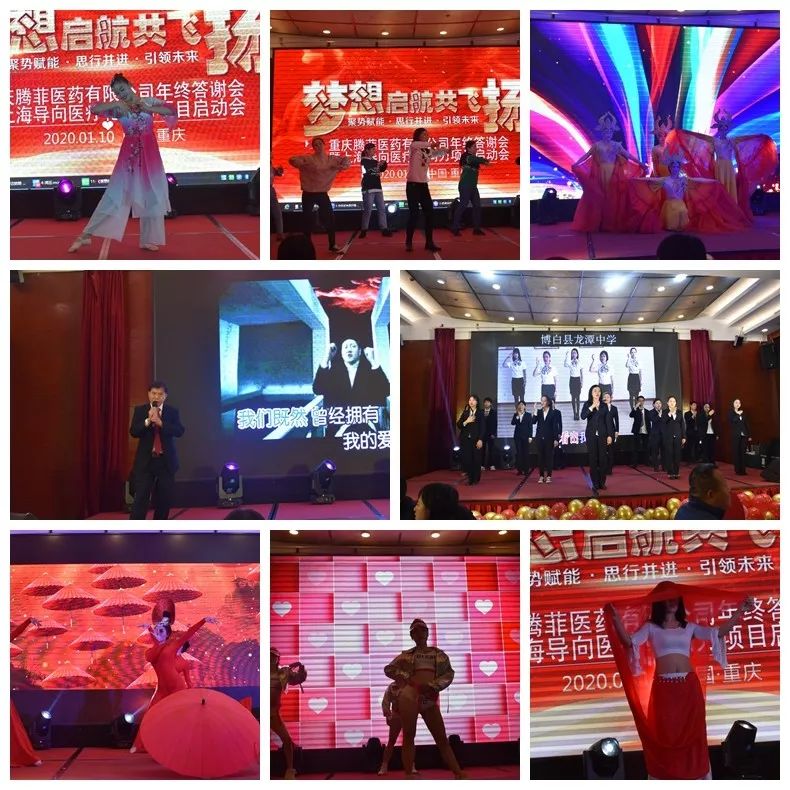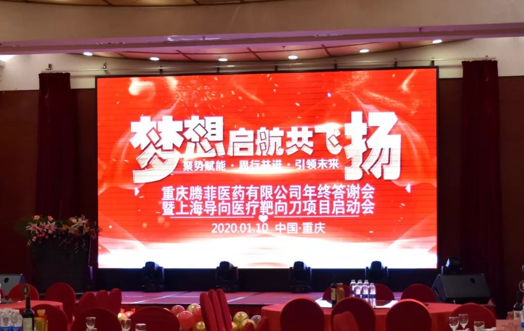 元月10日下午,商会常务副会长尹行波单位——重庆腾菲医药有限公司年终答谢会暨上海导向医疗靶向刀项目启动会在重庆君豪大饭店隆重举行。 重庆市原副市长、重庆市企业联合会(企业家协会)会长、商会总顾问余远牧,商会会长付建忠,名誉会长罗来安、余启焕,常务副会长周美菊、邓康维、万发连,副会长龚安民、严小江,秘书长聂中华等商会理事及常务副会长尹行波单位邀请的嘉宾、领导、客户、员工等200余人欢聚一堂,共同祝愿腾菲医药明天更辉煌!