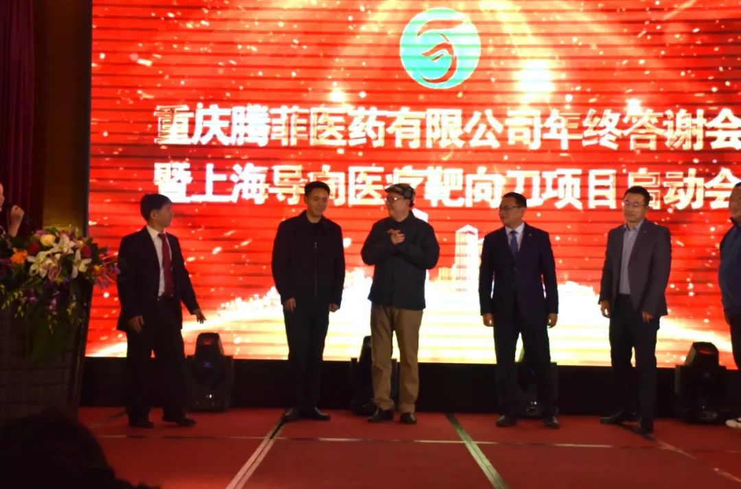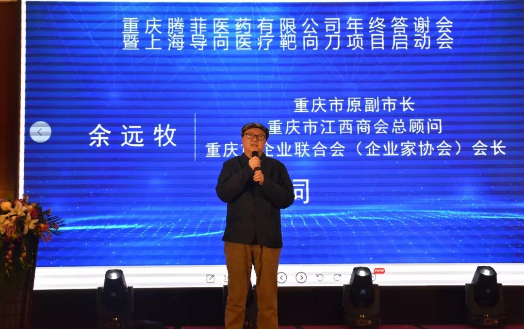 活动现场,商会常务副会长、重庆腾菲医药有限公司总经理尹行波向全体到会嘉宾致新年贺词,首先感谢大家一直以来对腾菲医药的支持与帮助,并表达了对腾菲医药有限公司全体员工的深切关怀、肯定了2019年所取得的辉煌成绩以及对公司未发展的期许。随后,商会会长付建忠,重庆市原副市长、重庆市企业联合会(企业家协会)会长、商会总顾问余远牧先后发言,分别对重庆腾菲医药有限公司年终答谢会暨上海导向医疗靶向刀项目启动会的成功举办表示了热烈的祝贺。同时希望腾菲医药在尹总的带领下业绩更上一层楼。