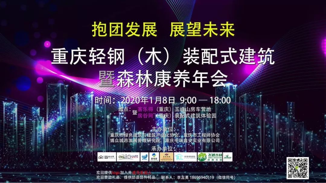 元月8日上午,由商会名誉会长罗来安单位——重庆中瑞鑫安实业有限公司及重庆市绿色建筑与建筑产业化协会、 重庆市工程师协会、 博众城市发展管理研究院联合主办重庆市轻钢(木)装配式建筑暨森林康养在客乐得(重庆)玉峰山房车营地成功举办。