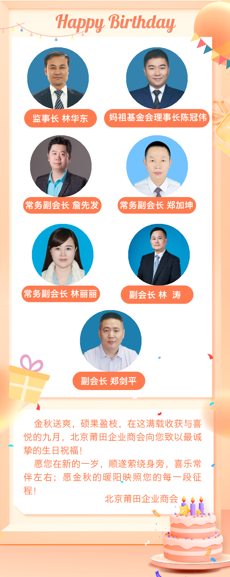 北京莆田企业商会恭祝九月份生日的商会领导生日快乐!