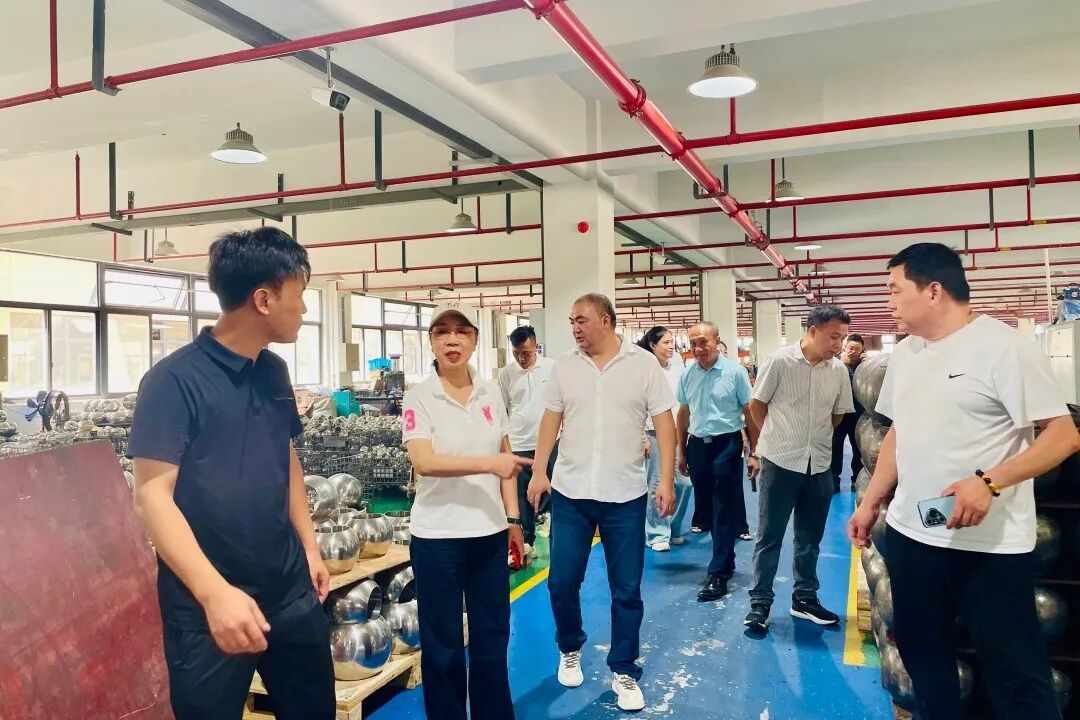 第三站,走访团走进会员黎伟主导的浙江益胜阀门有限公司,该企业专攻各类阀门球体生产,产品包括空心球、实心球、浮动球等,可适配闸阀、球阀、截止阀等多种阀门类型。在生产车间,团队直观了解到企业在球体精度控制、表面处理等方面的技术突破,黎伟表示,企业正通过技术迭代提升产品适配性,助力下游阀门企业提升整体性能。