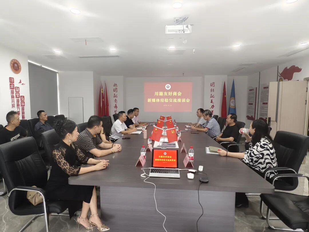 2025年9月12日下午,重庆市四川内江商会在商会会议室组织召开川籍友好商会新媒体经验交流座谈会。来自在渝川籍的德阳商会、资阳商会、南充商会、乐山商会、凉山州商会及广安岳池、南充高坪商会的秘书长及嘉宾参加会议。会议由内江商会秘书长蔡道良主持。