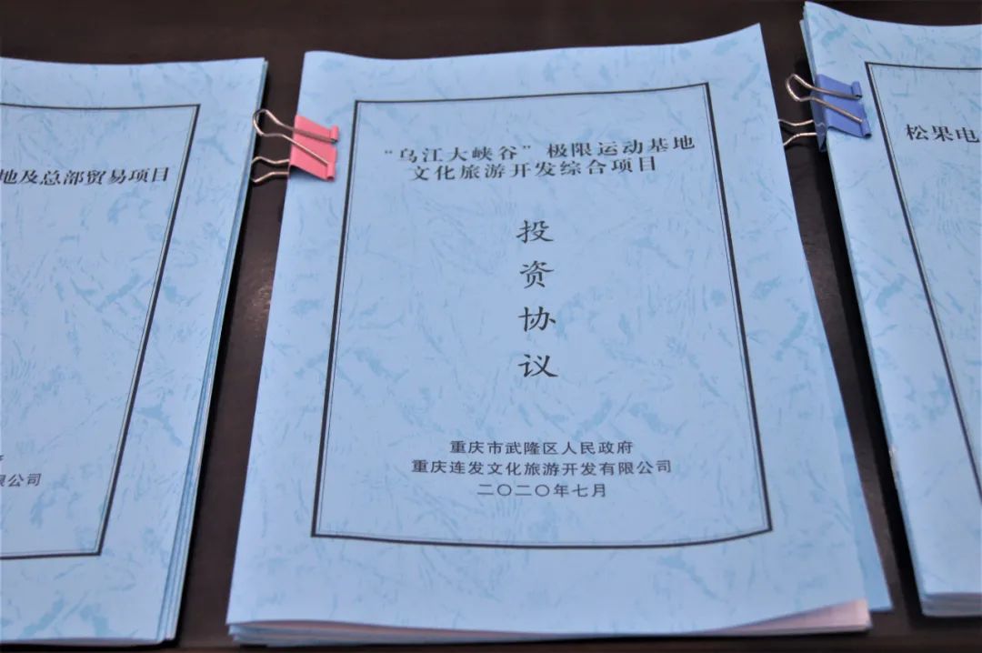 据悉,本次集中签约项目共8个,总签约金额26.8亿元。包括九街茶市场、再生资源回收基地及总部贸易、“乌江大峡谷”极限运动基地文化旅游开发、松果单车智慧低碳出行、“道润中国·武隆仙女山康养文化国际交流中心文旅综合体”、仙女山国际森林教育营地、年产3万吨混凝土外加剂、建设绿色智慧能源示范区合租协议。这些签约项目,符合国家和重庆政策取向,契合武隆产业定位,前景可期、大有可为。