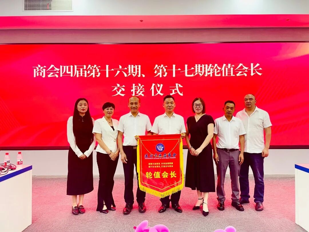 第十七期轮值会长组则详细阐述了未来轮值期间的工作计划与重点方向,明确了将围绕企业需求深化服务、加强商会内外联动等目标。汇报结束后,会议举行了轮值会长组交接仪式。