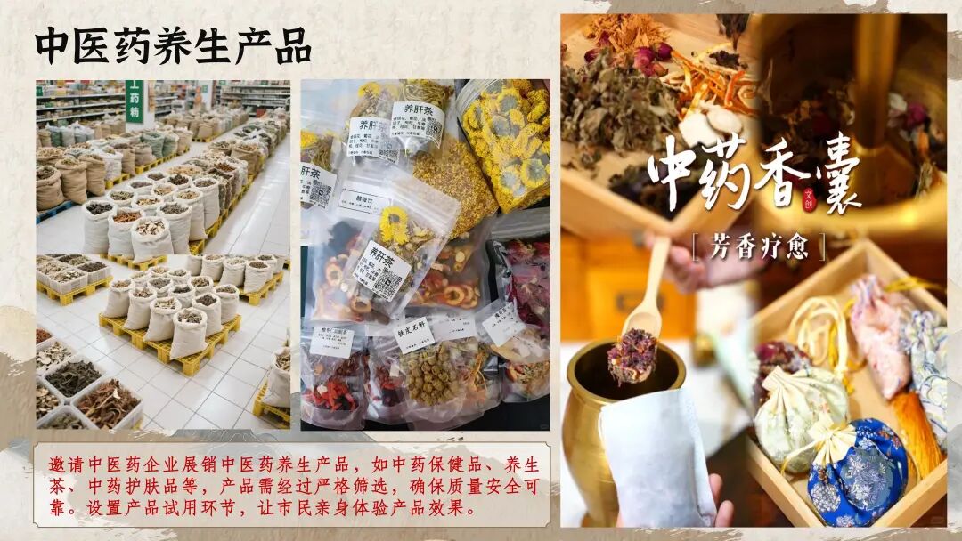 活动设置中医药养生产品(中药保健品、养生茶、中药护肤品等)、健康食品(有机蔬菜、杂粮、坚果)、养生器械(按摩椅、艾灸仪等)展销区,会员企业可现场对接优质供应商,拓展采购与合作渠道;若您有相关产品,也可参与展示,精准触达25-60岁核心消费人群(上班族、中老年、养生爱好者及家庭群体)。