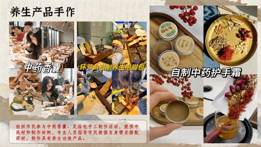 中药香囊、足浴包、中药护手霜手工制作,“闻香识本草”药材鉴别等趣味环节,既能丰富企业团建形式,也能为品牌引流,增强客户粘性;同时,活动现场将通过展板、纪录片展示中医药历史文化,助力会员企业深入了解中医药产业价值,挖掘跨界合作可能性。