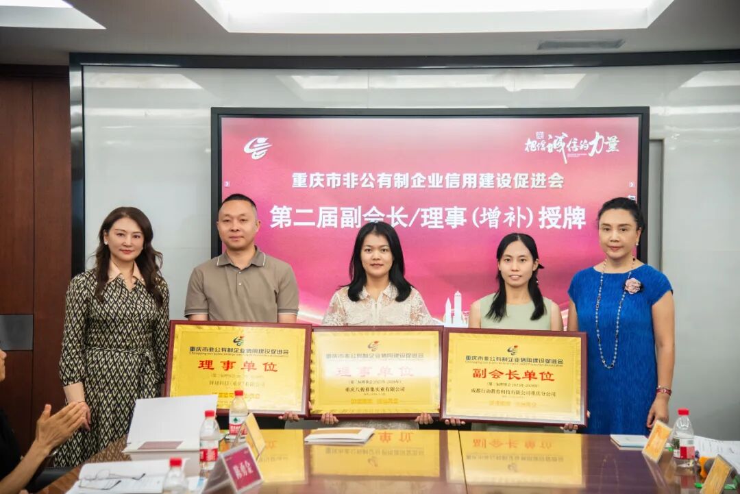 增补的10位理事里,覆盖医药、科技、工程、服务等领域,且藏着不少“诚信榜样”:重庆弘道医药以党建引领诚信经营,严守道地药材溯源与全流程质控,铸就零违规品质口碑并通过健康公益传递诚信价值;行动教育重庆分公司作为中国管理教育界唯一主板上市公司的直营分校,凭借实效管理服务,已为学平大健康产业集团、德庄集团、金夫人集团等近百家大中型企业,提供了企业全生命周期管理教育服务;退伍军人邓红军,推动八骏祥集实业早在2015年就成立党支部,“退伍不褪色,诚信就是我们的‘军规’”;还有做信用修复的铎译科技,已帮近100家企业解决信用难题。