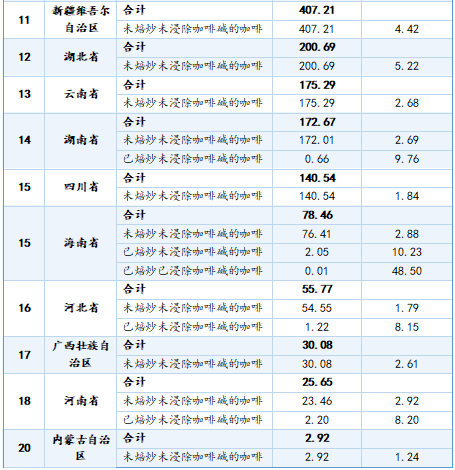 从进口品类来看,未焙炒未浸除咖啡碱的咖啡仍占据主导地位,占比超过99%,表明中国目前仍以进口咖啡原料豆为主。但与此同时,精深加工咖啡产品开始显现增长势头,如海南省进口的"已焙炒已浸除咖啡碱的咖啡"单价高达48.50美元/斤,是普通咖啡生豆的十余倍。