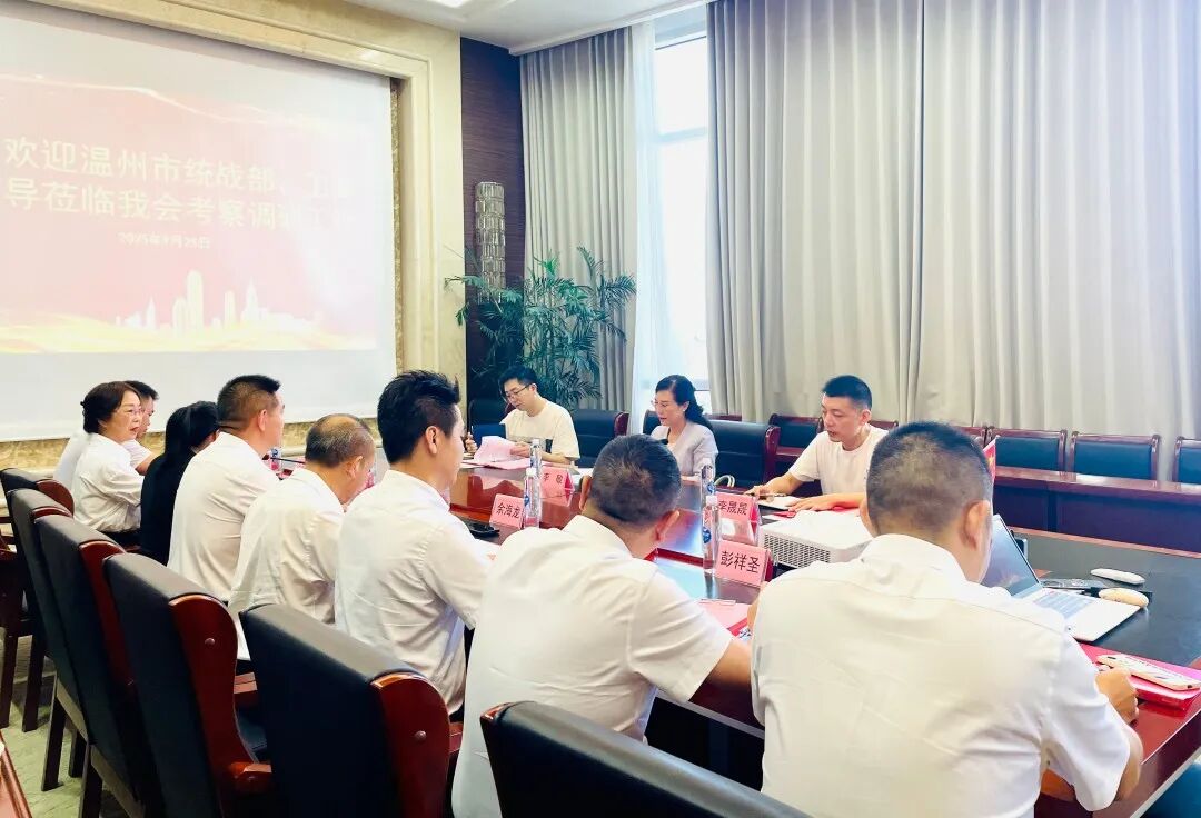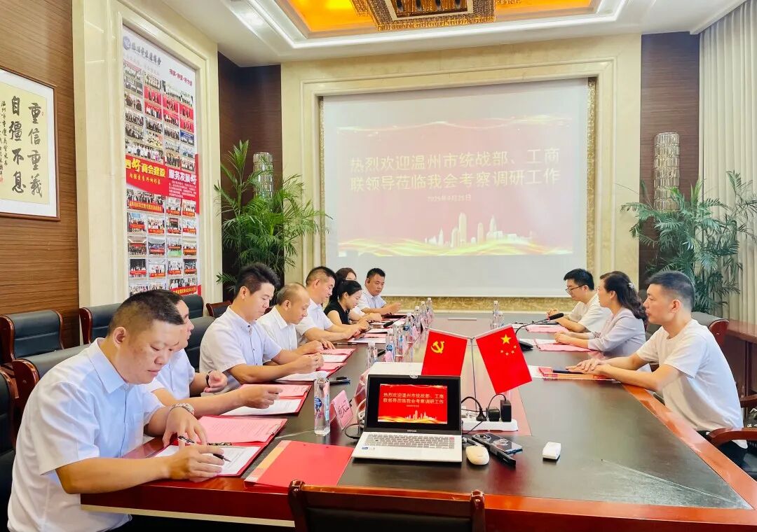 9 月 25 日下午,温州市委统战部副部长、市工商联党组书记李敏等领导莅临商会,开展考察调研与工作指导。商会刘小林会长及商会常务领导对考察组一行表示热烈欢迎。