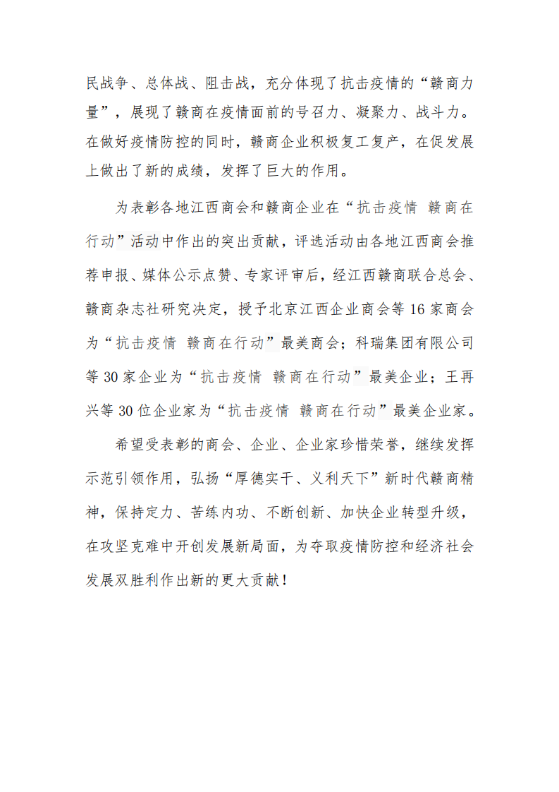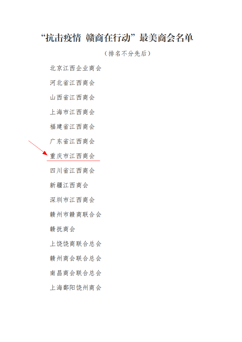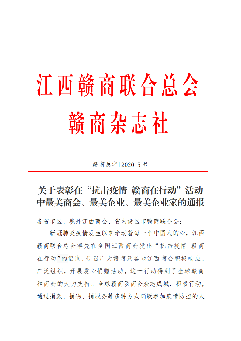 热烈祝贺重庆市江西商会在江西赣商联合总会 赣商杂志社“抗击疫情 赣商在行动”活动中荣获“ 最美商会 ”称号