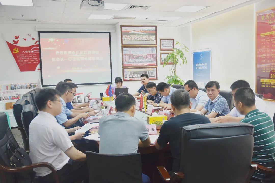 为加强兄弟商会之间沟通交流,抱团发展,资源共享。5月18日下午,重庆市永川区江西商会张志东会长等一行8人前往我会座谈交流。我会会长付建忠,轮值会长、党支部书记龚贵鹏,名誉会长罗来安,常务副会长邓康维、尹行波、熊俊,副会长谢艳春,理事邓增绍,秘书长聂中华等热情接待了来访人员并举行了交流座谈会。