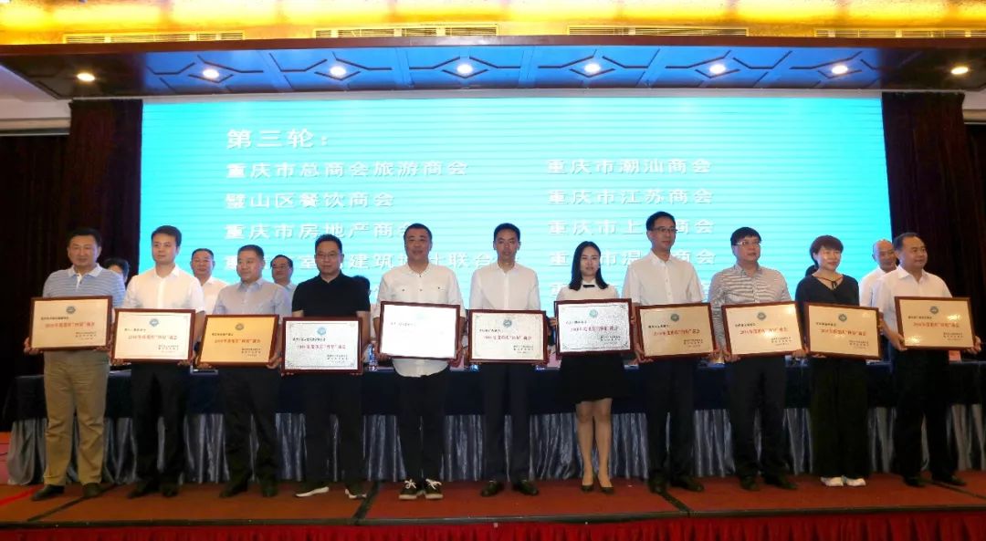 (我会会长付建忠代表商会上台接受重庆市“四好”商会授牌)