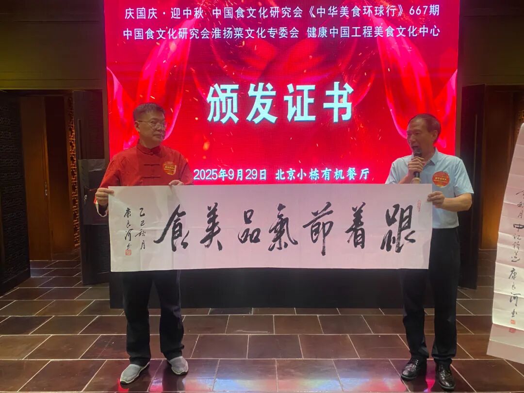 2025年9月29日,中国食文化研究会淮扬菜文化专委会、健康中国工程美食文化中心联合主办的2025新书《中华24节气养生宴 伊尹文化传承美食菜谱》首发式暨国宴淮扬菜匠心传承大会在北京复兴门百盛六楼小栋有机餐厅如期举办。